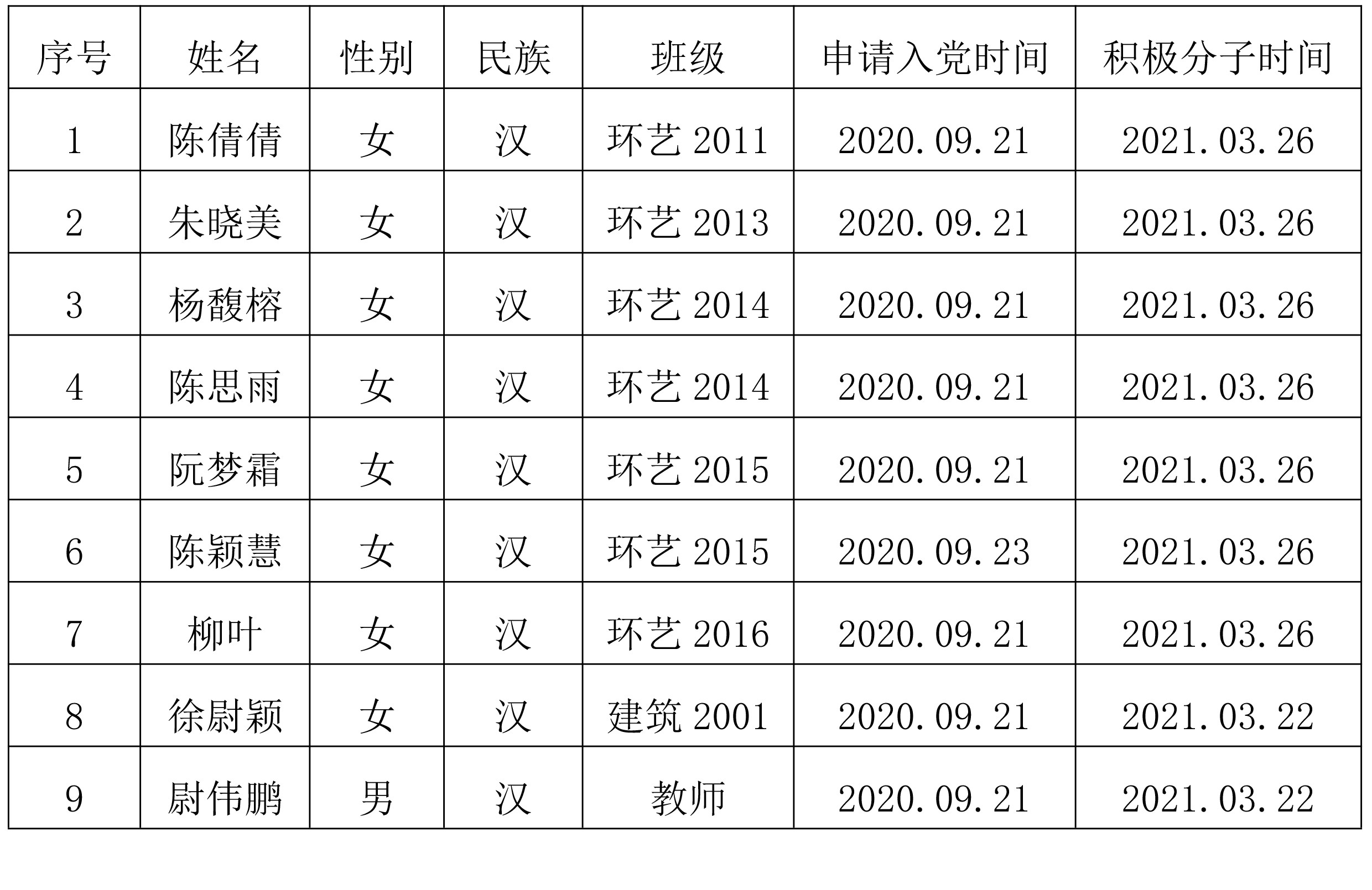 在征求党小组和党员、群众意见的基础上,经支部委员会审查,拟将朱晓美等9位同志列为发展对象人选。根据发展党员工作有关要求,现将其有关情况公示如下,经党支部培养教育和考察,该同志已基本具备党员条件,在征求培养联系人、党员和群众意见的基础上,经中共北海艺术设计学院建筑与环境艺术学院学生第二支部委员会2022年10月11日讨论同意列为发展对象人选。