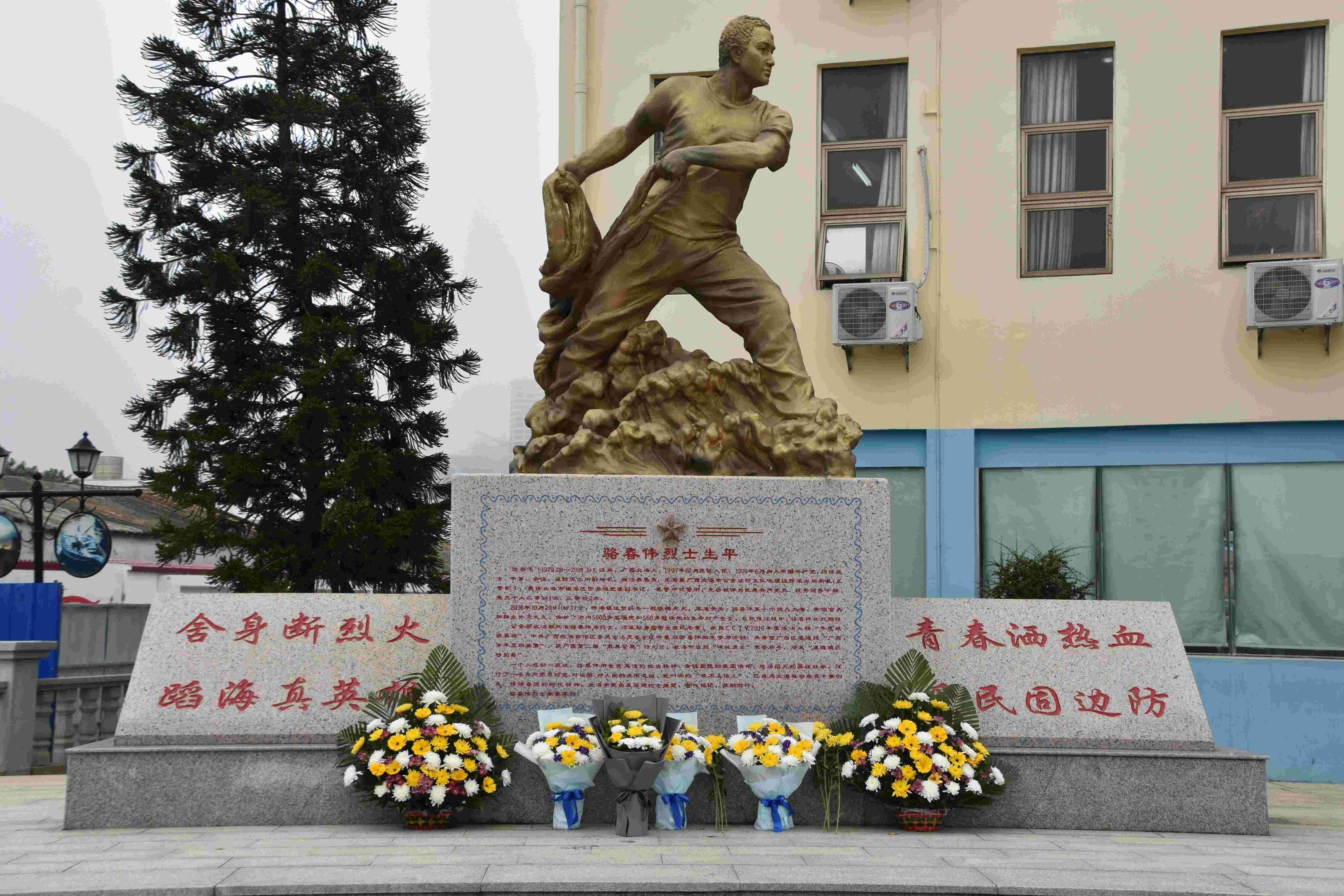 “珠城勇士”骆春伟烈士塑像是原动画与传媒学院张大生教授亲自主持带领学生共同建造英雄骆春伟的雕像,整座塑像高4.5米,这是北海市首座英雄塑像。