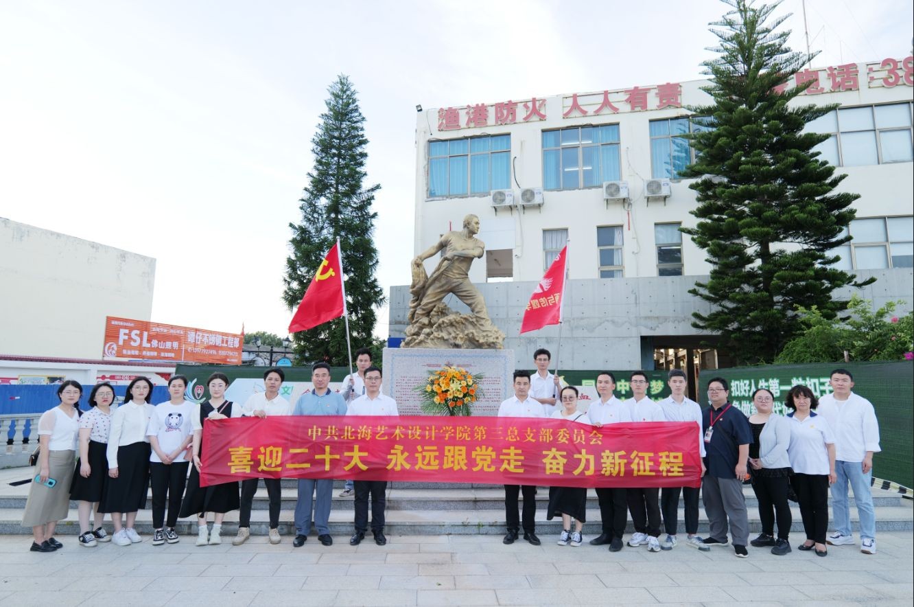 2022年6月3日下午,第三党总支组织教师党员前往北海市侨港镇骆春伟纪念广场开展“喜迎二十大,永远跟着党走,奋力新征程”主题教育活动。教师们站在“珠城勇士”纪念碑前,深情寄托对烈士的无限哀思,为烈士默哀。