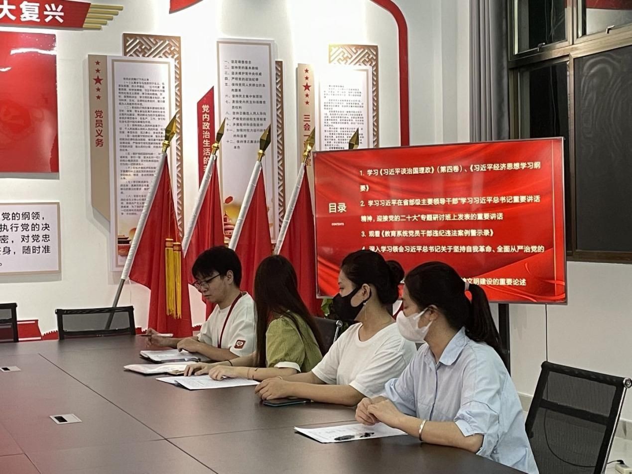 本月专题学习内容共有五项内容:学习《习近平谈治国理政》《习近平经济思想学习纲要》;学习习近平在党部级主要领导干部“学习习近平总书记重要讲话精神,迎接党的二十大”主题研讨班上发表的重要讲话;组织观看《教育系统党员干部违纪违法案例警示录》;深入学习领会习近平总书记关于坚持自我革命,全面从严治党的重要论述;深入学习领会习近平总书记关于精神文明建设的重要论述。