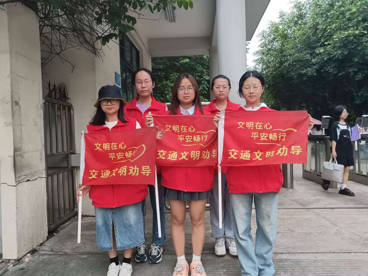 在我们美丽的校园周边,有一群特别的守护者。他们身穿红马甲,手持交通指挥旗,站在繁忙的路口耐心地引导车辆和行人,确保交通井然有序。在每一个车水马龙的日子里,走过一月又走过一季,他们不畏酷暑,不惧风雨,用实际行动守护着我们的安全。