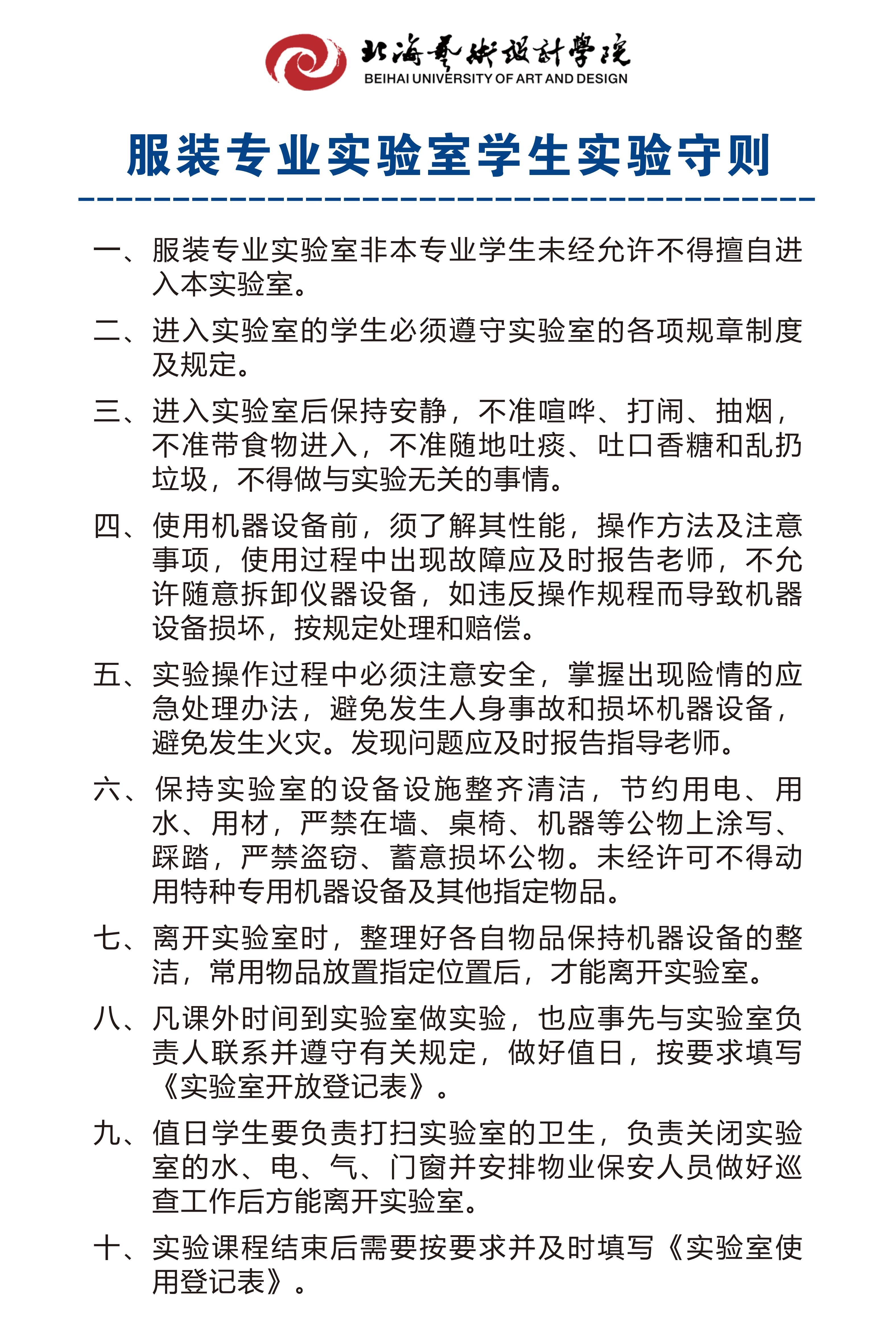 服装专业实验室学生实验守则