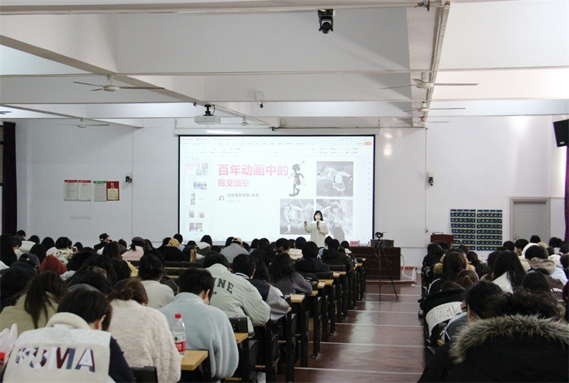 1月7日上午,北京电影学院动画学院动漫策划专业副教授、硕士生导师孙平受邀莅临我校,在西校区伦理楼107教室为学校师生开展题为《百年动画中的百变孙悟空》的专题讲座。讲座现场座无虚席、气氛热烈。其间,孙平教授围绕动画创作展开深层次交流,并分享了来自产业前沿的探索经验。