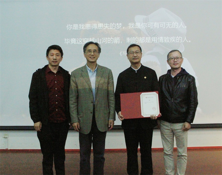 讲座开始前,卢新华校长为张树新教授颁发聘书,聘任张树新教授为我校设计艺术学院教授。