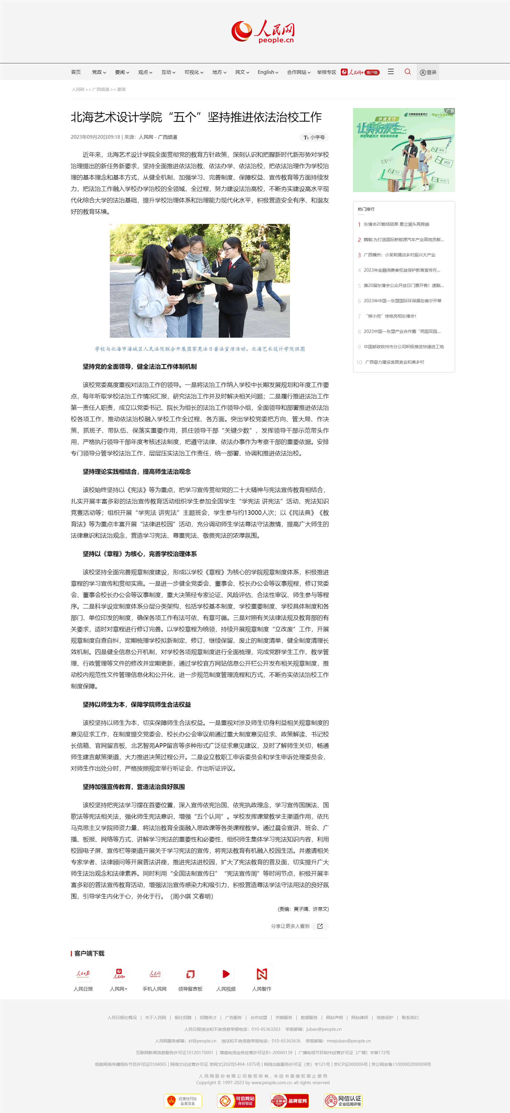人民网:北海艺术设计学院“五个”坚持推进依法治校工作
