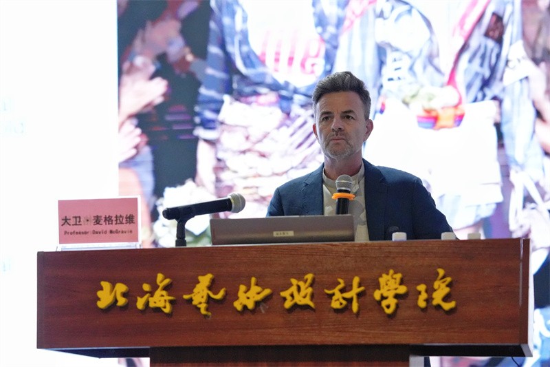 讲座伊始,大卫・麦格拉维教授以自身求学与职业经历为切入点,分享了从平面设计专业学习到投身设计实践的成长历程。讲座重点阐释了中国设计蕴含的独特东方美学价值,并倡导师生以包容开放的姿态,开展跨文化的艺术设计交流互鉴。