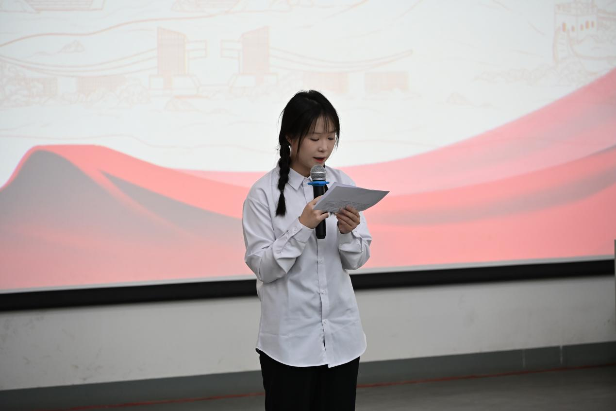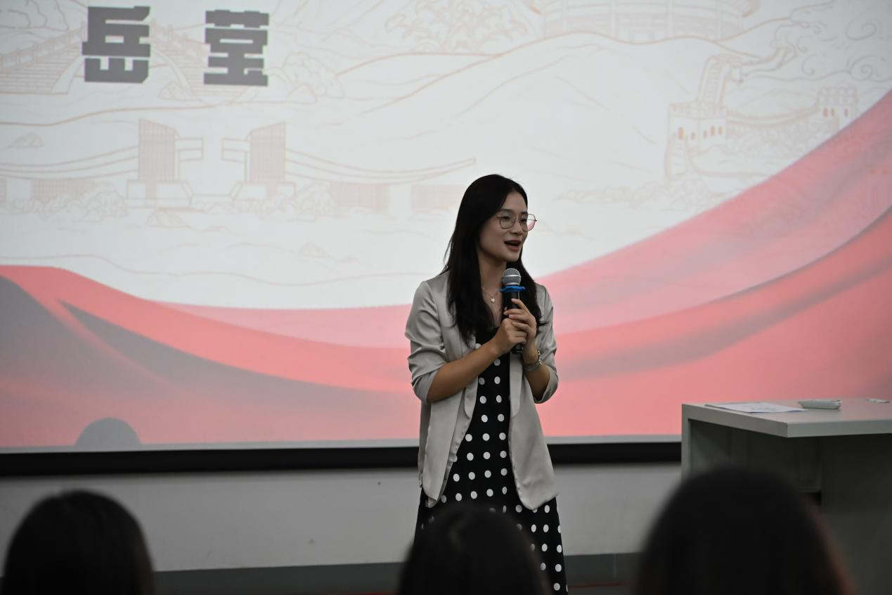 会议伊始,文学院党支部书记岳莹为大会致辞。岳书记首先对分团委成员在过去一年中的辛勤付出给予充分肯定。无论是迎新志愿活动中烈日下的执着坚守,还是团支部深入社区促进文化融合的不懈努力,亦或是积极参与学院各类展览与会议的忙碌身影,成员们的辛勤付出始终清晰可见。她指出,要切实做好“老带新”工作,将宝贵的工作经验传授给新加入的干事,以助力他们更快、更好地融入分团委的工作环境。同时,希望成员们珍视分团委这一平台,把握宝贵机会,持续提升个人能力,展现文学院学子的青春风采 。