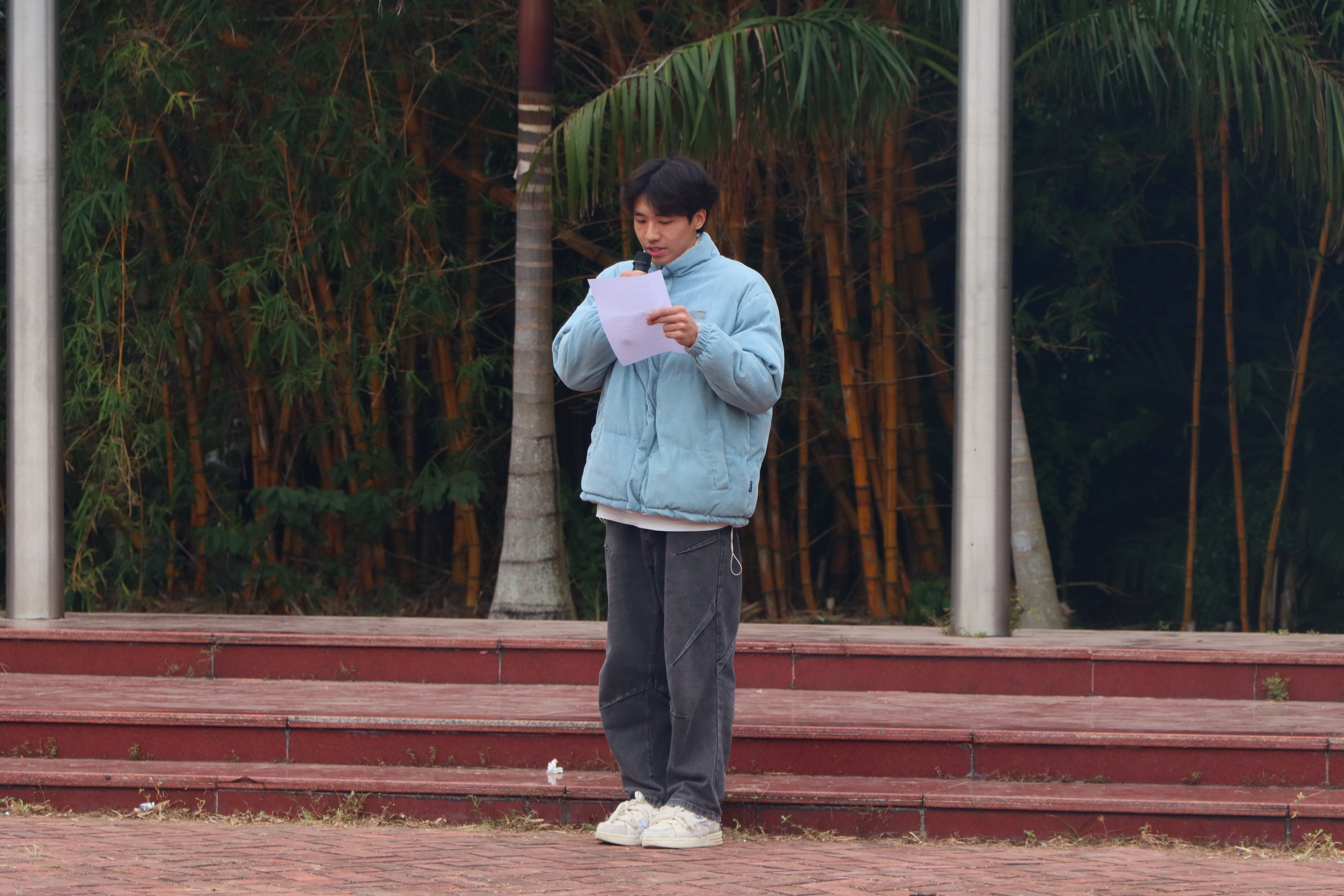 学生代表廖佳辉上台分享其经验与心得,畅谈收获,展望未来,砥砺前行。