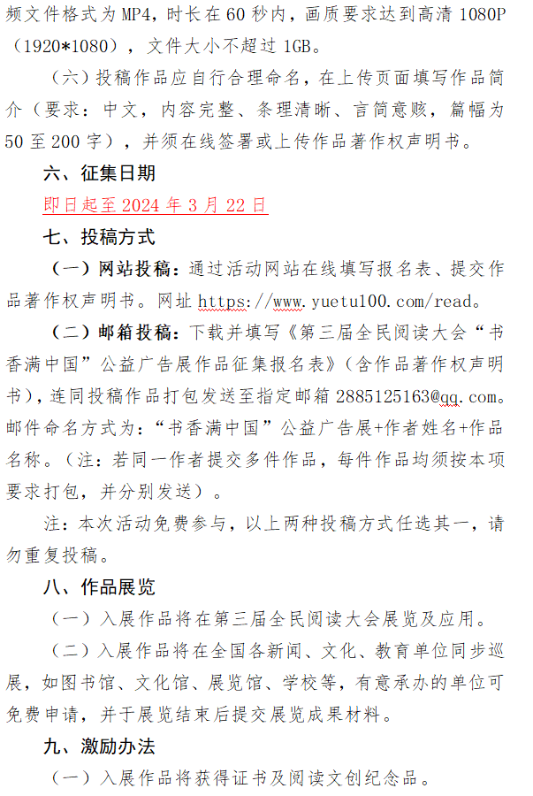 附件:关于开展第三届全民阅读大会“书香满中国”公益广告展作品征集的通知