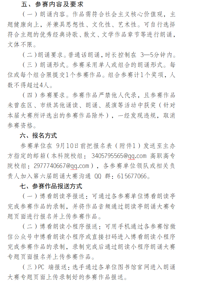 本次朗诵大赛具体内容附后,希望同学们踊跃报名参赛,请大家扫码提交作品!