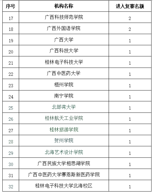 关于公布第七届广西高校大学生“铭记抗战烽火 传承抗战精神”朗诵大赛复赛推荐名额的通知