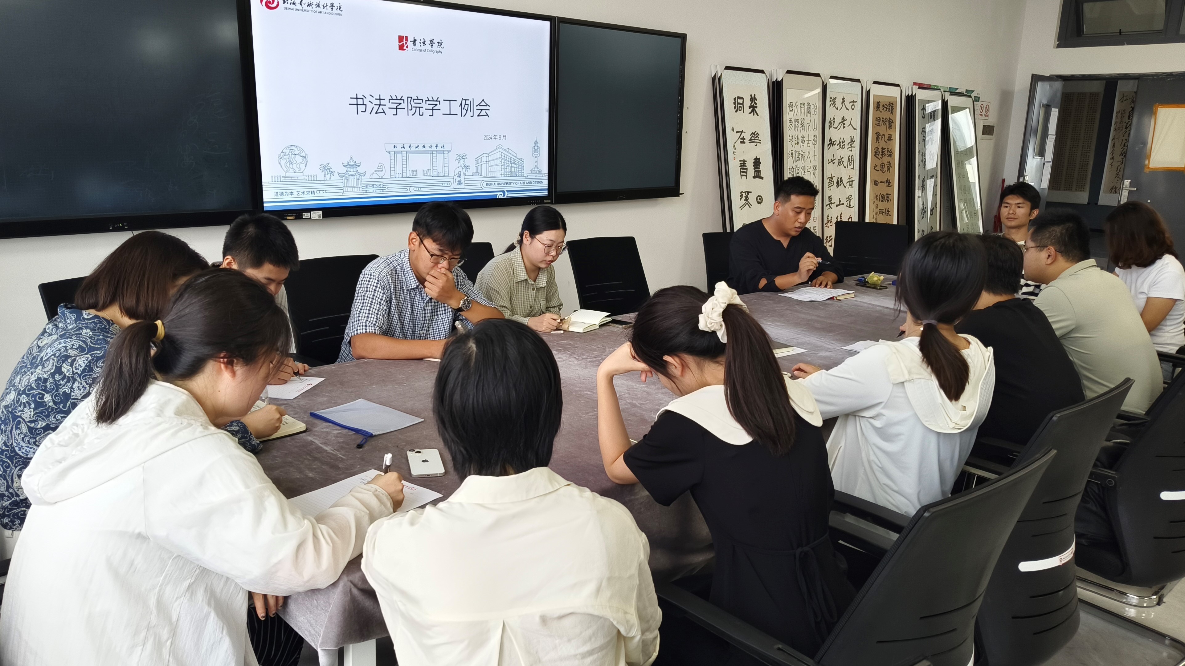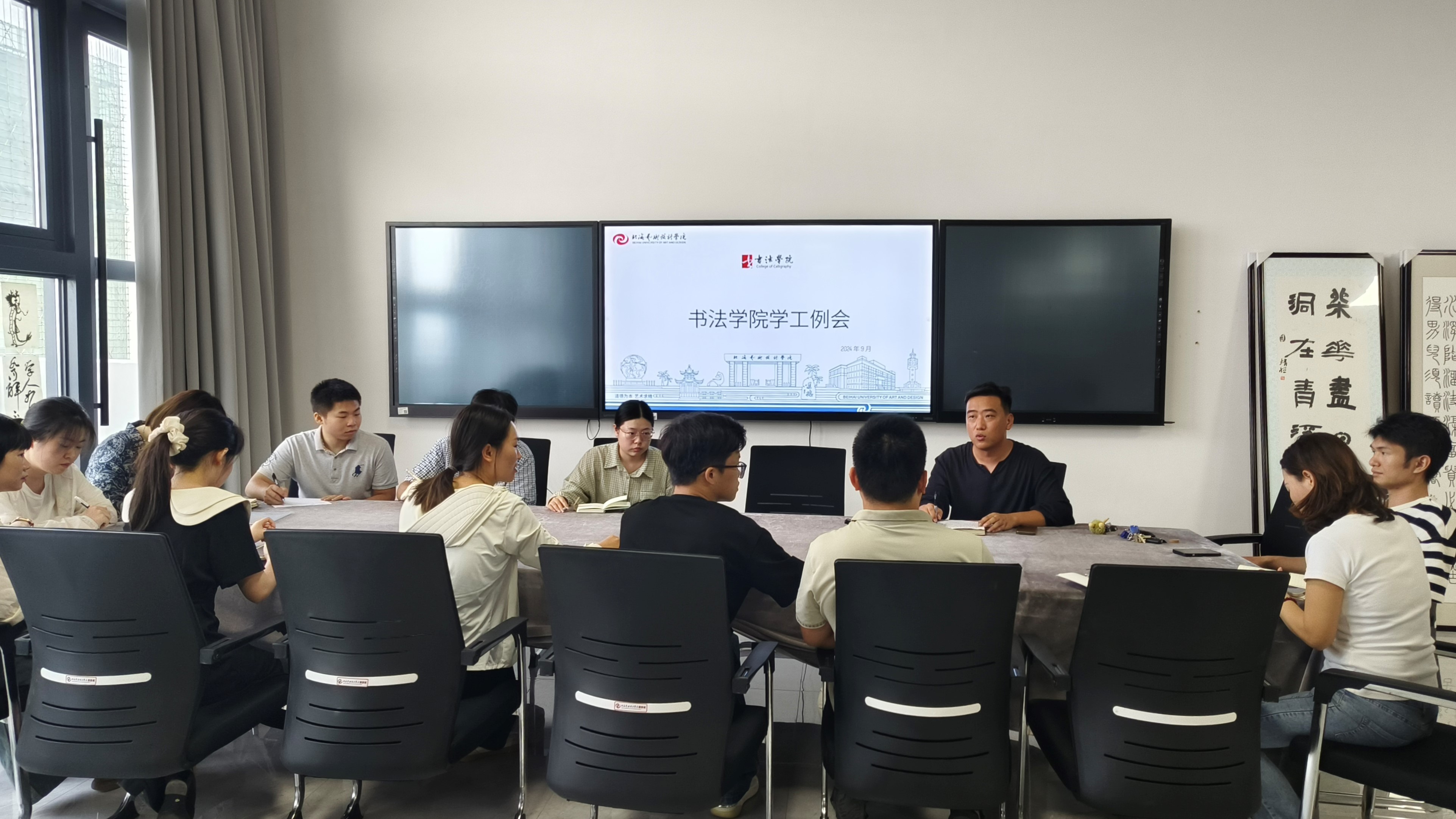 2024年9月25日下午,学生工作办公室于艺德楼507会议室召开书法学院学生工作例会。书法学院党支部书记喻广林、书法学院学工办主任李家琪、副主任左云飞及全体学工教师参加此次会议。会议由李家琪主任主持。