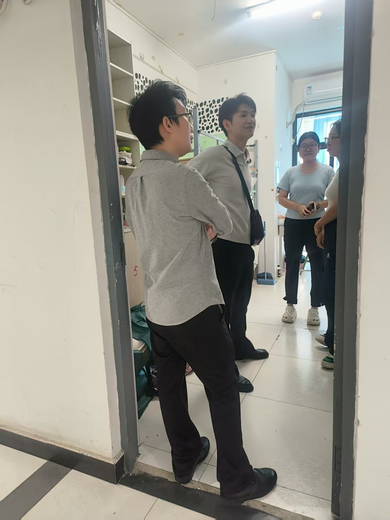 2025年8月20日下午,在北海艺术设计学院北京实践基地(宏福)的学生宿舍里,书法学院常务副院长苏乃从、党支部书记喻广林深入学生宿舍,与同学们亲切交谈,细致询问大家的学业进展、生活需求及未来规划,了解他们的学习、生活、思想状况以及实际困难,认真听取同学们对学院工作的意见和建议。