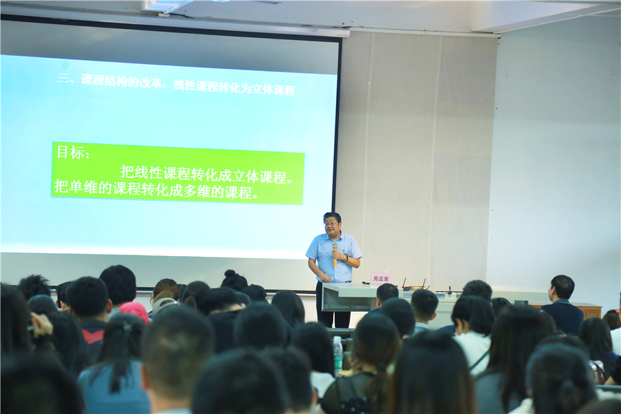 2019年11月5日,广西民族大学唐德海教授应邀为我校全体教师做了题为《大学教育教学改革的几个着力点》的学术讲座。