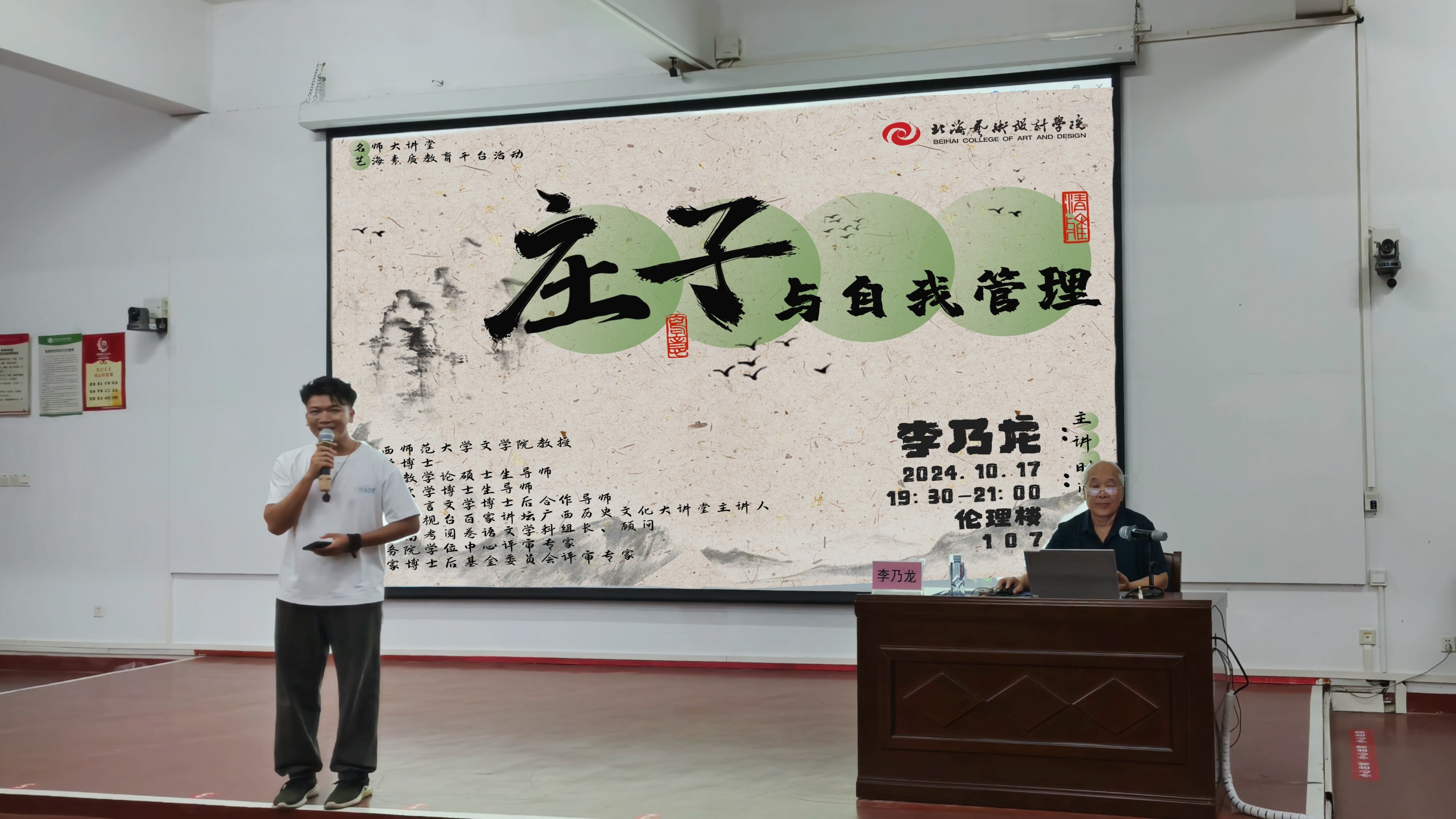 为培养我院学生的学术素养,提高学生的知识水平和认知能力,增强学生的自我管理能力,10月17日晚,我院邀请教授李乃龙于伦理楼107教室为广大师生带来一场题为《庄子与自我管理》的精彩讲座,文学院2022级、2023级学生参加讲座。本次讲座由我院汉语言文学教研室副主任康宗明主持。