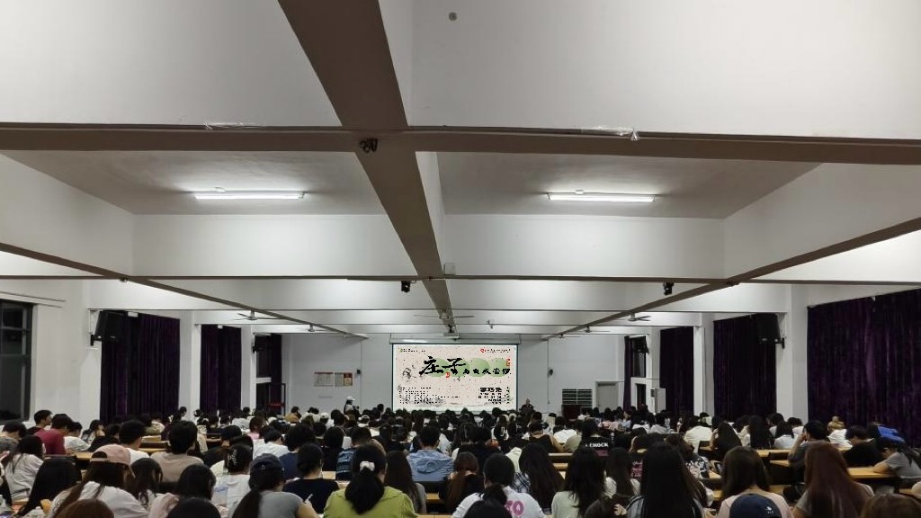 本次讲座以李教授的提问为线索进行。首先,李教授向大家提问,为何学庄子?李教授从“看透”、“看开”、“看高”三个要点,以生动的例子向学生们阐明了学习庄子对于自身的实用性。