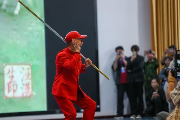 在讲座即将落下帷幕之际,全场气氛达到了最高潮。章金莱老师金箍棒在手,英姿飒爽,瞬间点燃了所有人的热情。表演中,章老师不仅展现了高超的武术技巧,更通过细腻的表情和肢体语言,将孙悟空复杂的性格特征刻画得淋漓尽致,让观众仿佛身临其境,亲眼见证了孙悟空从顽皮的石猴成长为一代英雄的传奇历程。这一刻,全场响起了经久不息的掌声,不仅是对章老师精湛演技的赞叹,更是对《西游记》这部经典作品以及其中所蕴含的深厚文化底蕴的致敬。