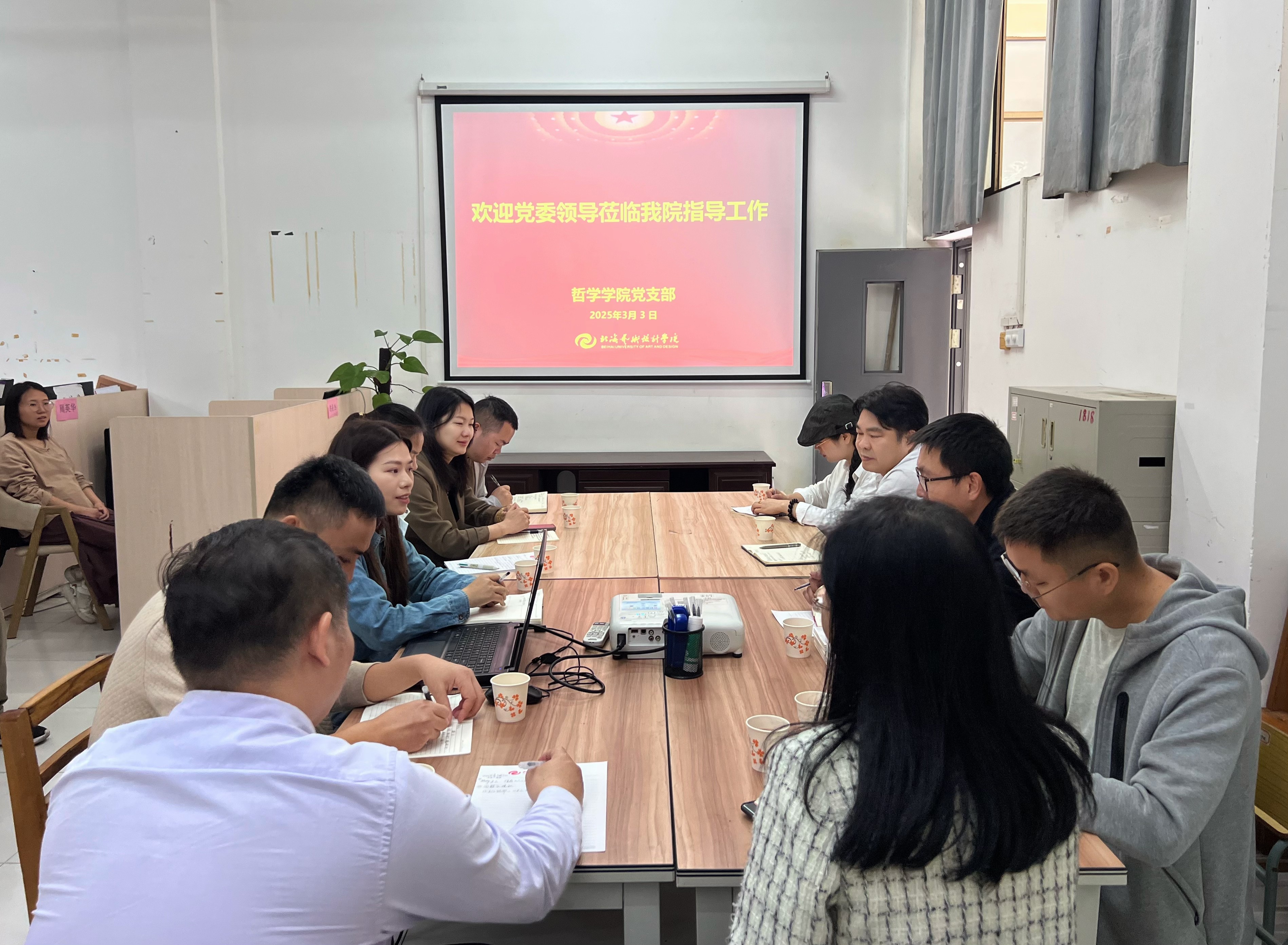 3月3日,学校党委副书记陈毅华一行莅临哲学学院,就哲学学院党支部建设、教师意识形态及思想政治学习等工作开展深入指导。哲学学院党支部书记谢伟、常务副院长李水亮、副院长蒋辉平、副院长覃传茵及部分教师党员代表参会。会议由哲学学院党支部书记谢伟主持。
