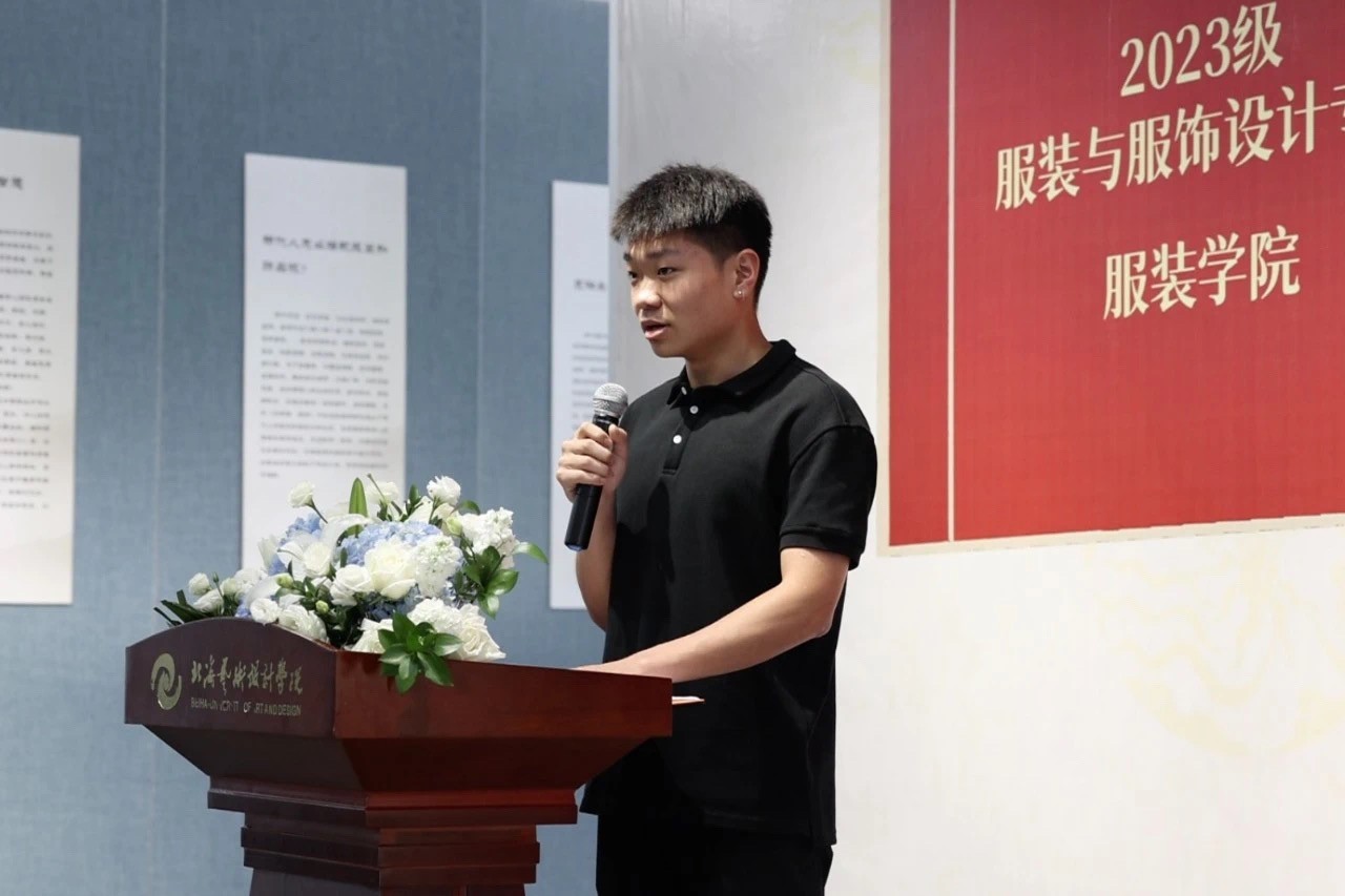 学生代表王路凯分享了他在制作明代汉服过程中的感悟与收获,他表示在传统制衣工艺的实践中,感受到了传统服装的魅力和古人的制衣智慧,加深了对传统服饰文化的深刻理解和现代设计元素巧妙融合的了解。