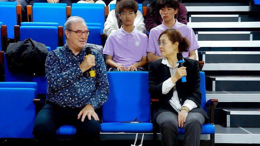 互动提问环节气氛热烈,师生们围绕“合奏中如何快速达成节奏默契”“不同风格曲目下音色协同技巧”等问题踊跃发问。埃瑞克·佛朗塞利教授强调,合奏的核心在于主动倾听与灵活调整,演奏者需敏锐捕捉伙伴的表达细节,在技巧展现中兼顾整体和谐。郝雪雯教授结合自身教学经验补充道,个体技巧是基础,而情感共鸣是关键,唯有将技巧融入情感,才能让合奏音乐真正触动人心。两位音乐家还分享了自身艺术生涯中磨合提升的经历,鼓励学子们在持续练习与沟通协作中精进合奏技艺。