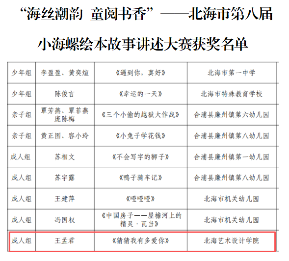 喜报——教育学院学子在北海市第八届小海螺绘本故事讲述大赛喜获佳绩