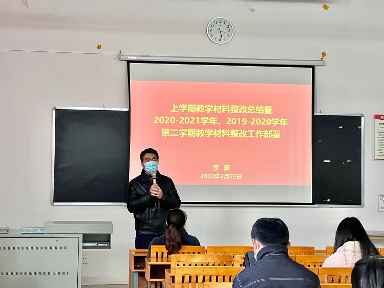 关于春季学期开学工作的全面部署,李谦副院长指出,各教研室要认真整理、检查上学期以及2020-2021学年、2019-2020学年的教学材料,查漏补缺,积极整改,同时,做好本学期的教学材料,全体教师树立责任意识,做好个人课程档案的同时协同推进本教研室工作的开展。此外,熊秀峰院长讲解了本学期预评估工作的推进计划,提出全体教师要就试卷、学科论文和人才培养方案做进一步的检查、修订,希望全体教师齐心协力,积极“备战”我校即将到来的教学工作合格评估。