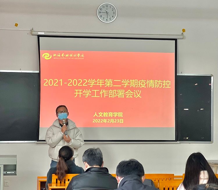 为切实做好2022年春季学期开学疫情防控工作,落实自治区、学校关于学生开学前后相关疫情防控政策和措施,确保学生安全有序返校,维护校园正常教学与生活秩序,2月23日,我院召开2021-2022学年第二学期疫情防控暨开学工作部署会议。人文教育学院全体教职工参加了此次会议。