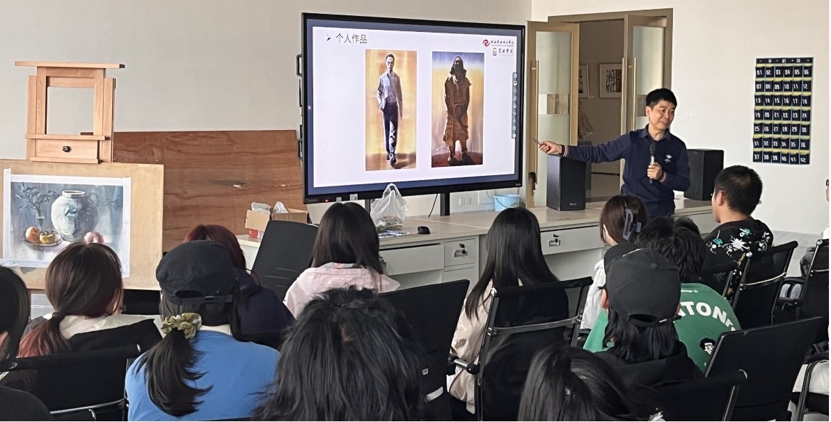 2023年11月17日,廖开教授来我院开展水彩画写生技法与表现的教学示范课。