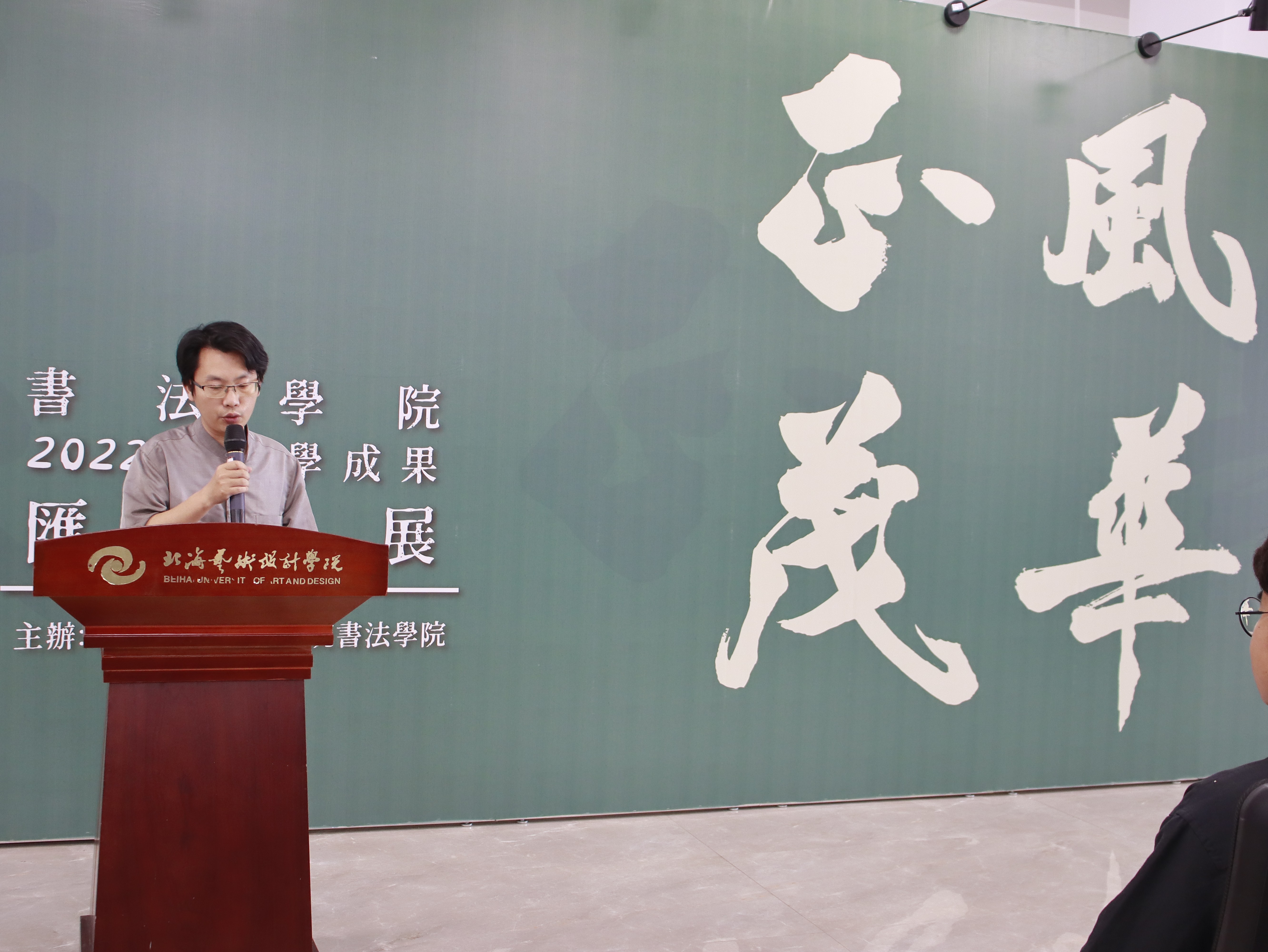 5月20日下午,风华正茂——书法学院2022级教学成果汇报展在艺德楼9楼北展厅顺利开幕。北海艺术设计学院党委副书记陈毅华、书 法学院客座教授张韬、书法学院的主要领导及老师出席本次展览开幕式,共同见证2022级书法学子在专业学习中的重要成果。