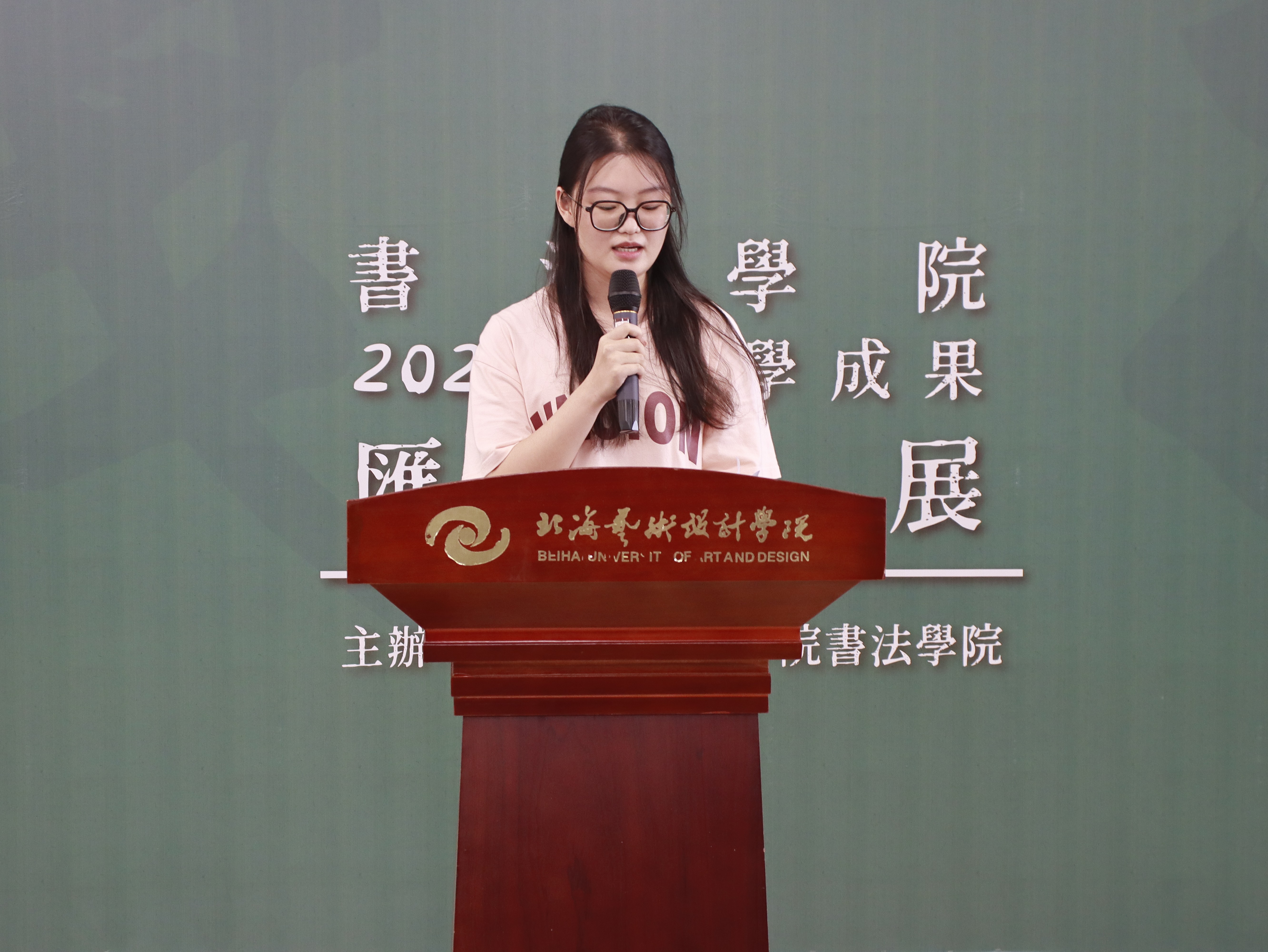书法学院2204班陈思思同学作优秀学生代表发言,她分享了自己在书法学院三年的学习经历和感悟。她表示,在学院的悉心培养和老师们的辛勤教导下,逐渐成长为能够熟练掌握多种书体、具备独立创作能力的书法人。通过学习书法,不仅提升了自己的专业技能,更培养了耐心、毅力和对传统文化的深厚情感。她衷心感谢学院提供的良好学习平台和老师们的无私奉献,并表示将继续努力,在书法道路上不断前行。
