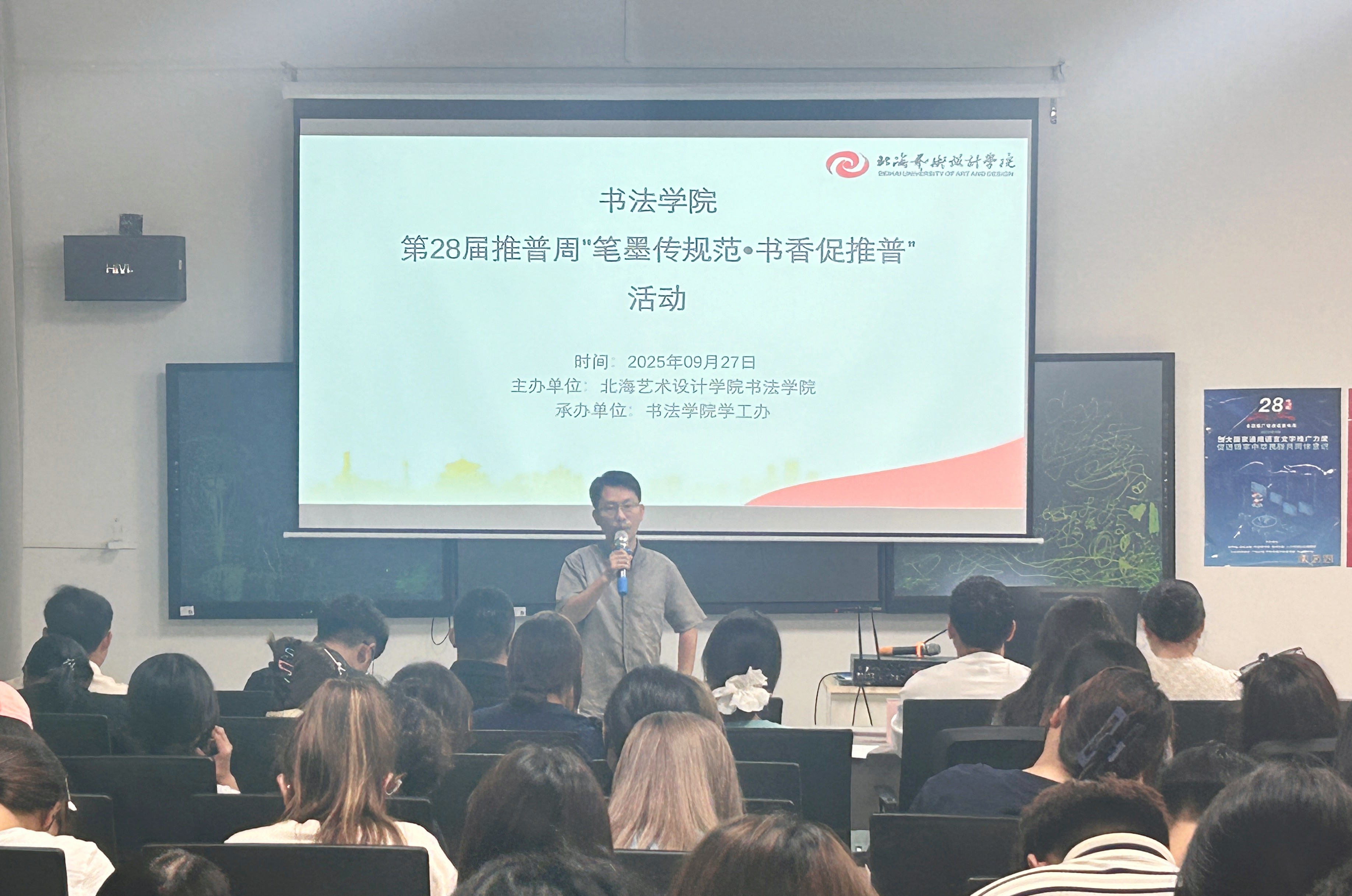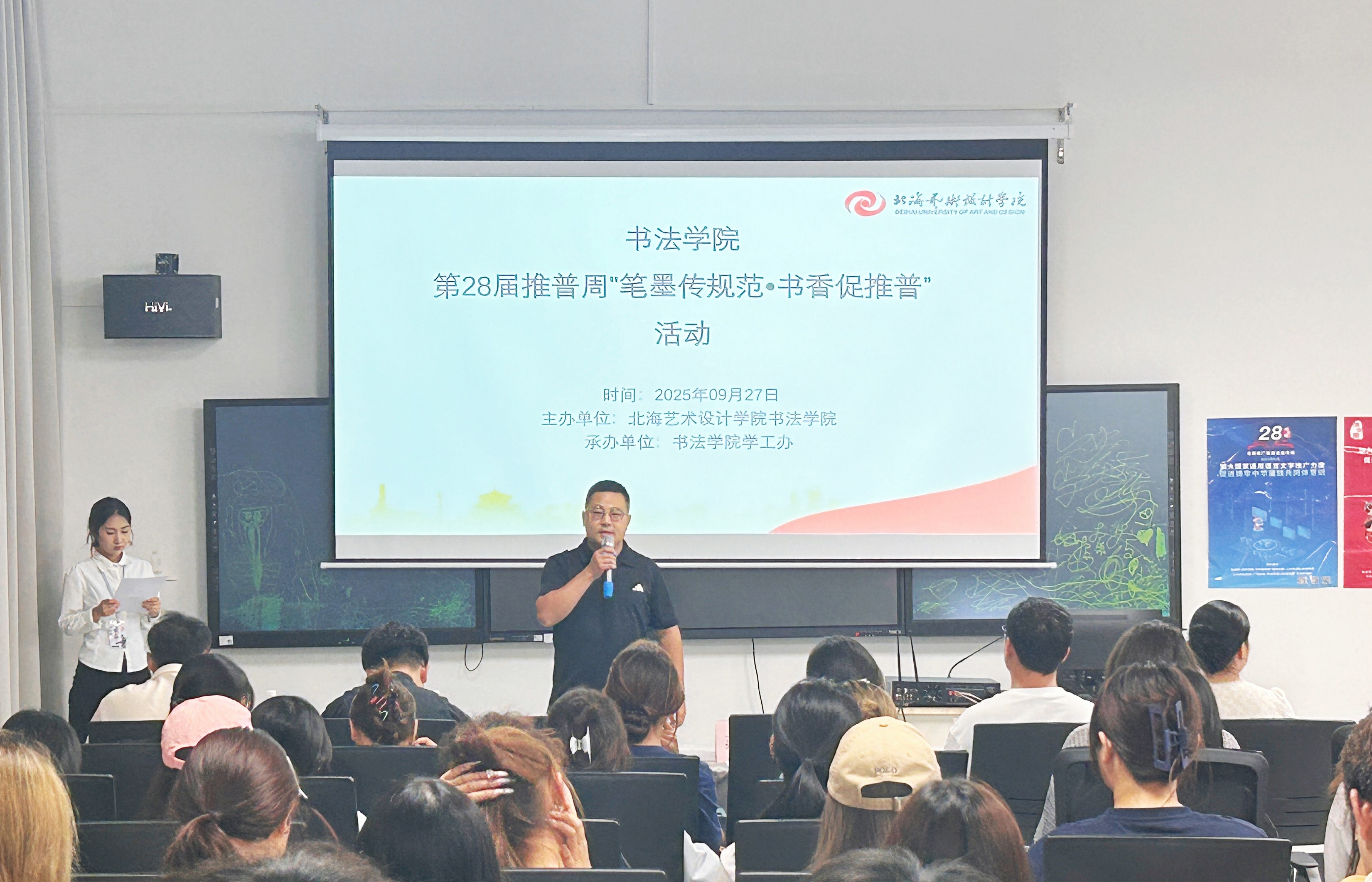 活动伊始,左云飞副书记致辞,他强调,本次活动将书法专业优势与推普工作深度结合,使文字规范从生硬的要求,转化为融入笔墨、见于日常的文化自觉。