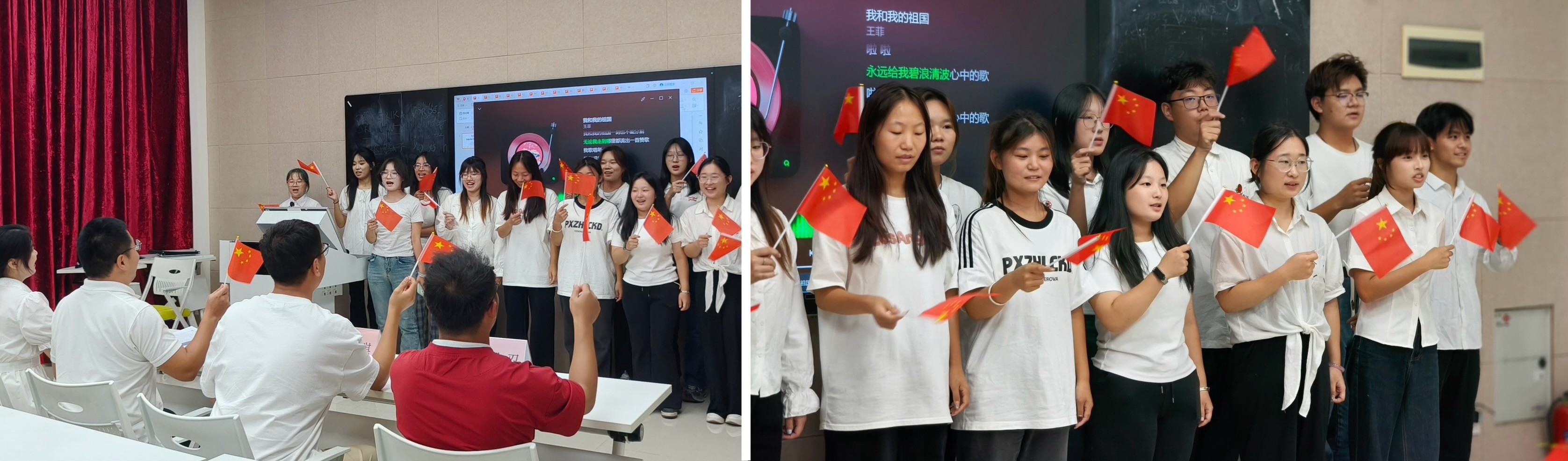 活动尾声,全体师生挥动国旗,齐声高唱《我和我的祖国》。激昂的旋律与真挚的情感交融,将现场氛围推向高潮,凝聚起师生对祖国的深厚情感与坚定信仰。
