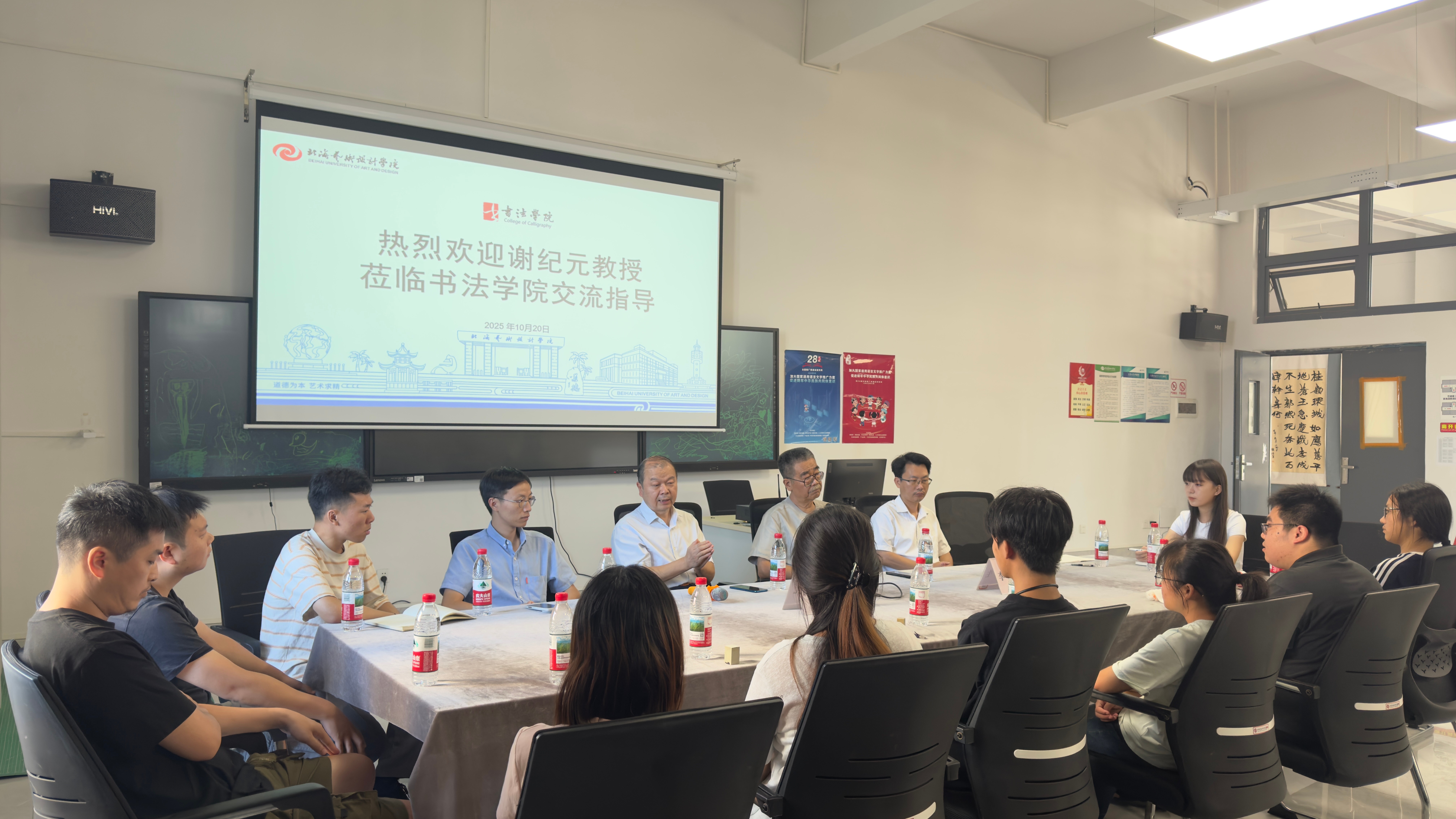 10月20日,陕西三秦书画研究院副院长谢纪元教授应邀至书法学院,在艺德楼507书法学教研室与师生代表围绕“书法篆刻艺术的传承与发展”展开专题座谈,共同探讨传统艺术在当代语境下的创新路径。