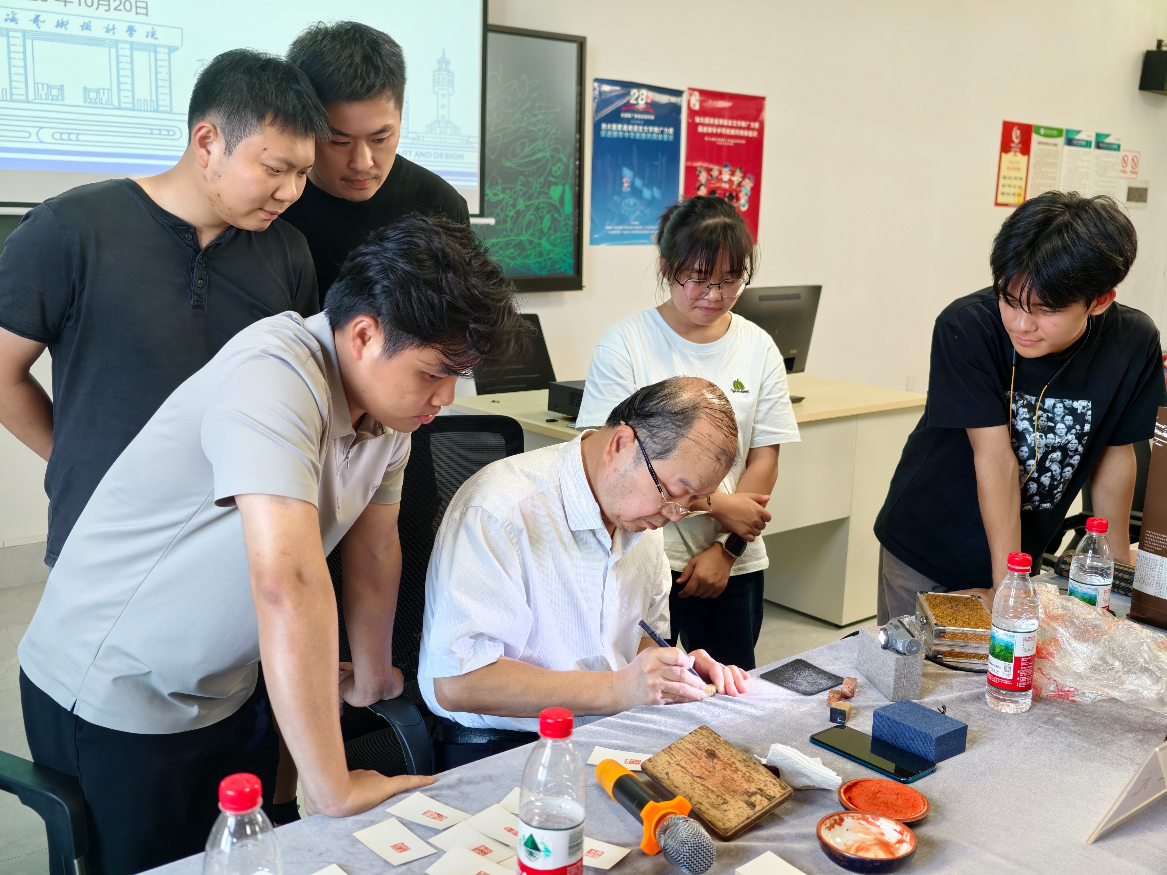 活动尾声,谢纪元副院长现场示范篆刻技法,并寄语师生:“书法篆刻不仅是技艺的传承,更是中华文化基因的延续。希望青年一代能以敬畏之心对待传统,以开放姿态拥抱时代,让这门传统艺术焕发新的生机。”本次座谈通过理论与实践的双重启迪,为师生提供了深刻的学习体验。书法学院未来将深化与书画研究院的合作,以系列化学术活动深化传统艺术与现代教育的融合,致力于培养兼具文化底蕴与创新能力的复合型人才。(张天赋、何保/摄)