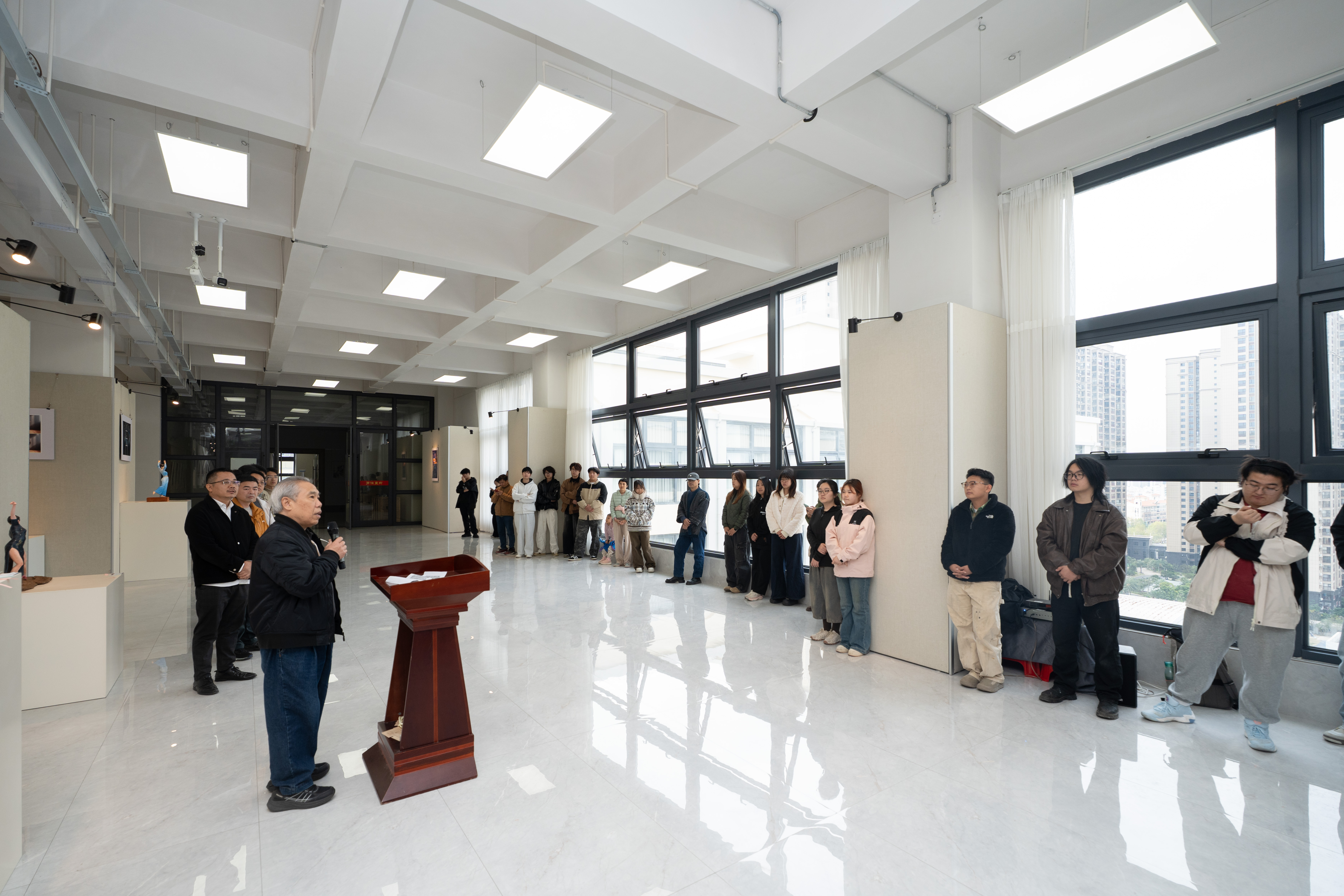 开幕式现场,王少军教授在致辞中表示,数字雕塑是传统雕塑专业与前沿技术融合的新方向,本次课程展既是教学实践的检验,也是校企协同育人模式的生动体现;龚为院长则对作品中“技术为艺术服务” 的创作思路给予肯定,鼓励学生继续探索数字与传统艺术的边界。