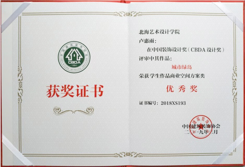 环境艺术学院的课程设计作品在2018年中国建筑装饰设计奖(CBDA设计奖)大赛中获得银奖4项、优秀奖20项;王文刚、周云莉、李二君、张艳、石少平、包美辉、聂明丽、李果男、唐良春老师荣获优秀指导教师奖。作为环境设计行业的龙头协会,行业发 展最具权威性、广泛性、专业性的设计协会,我院学生通过设计大赛的参与,设计能力 得到了肯定。校内课程教学和行业设计竞赛相结合,学生的综合素质得到了较大的提高。
