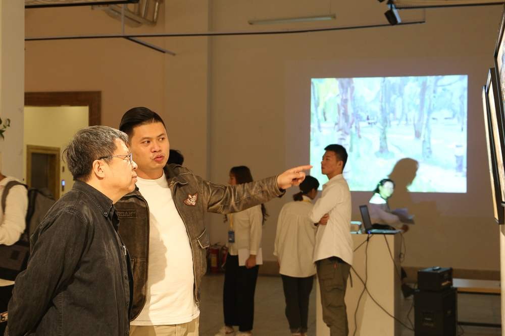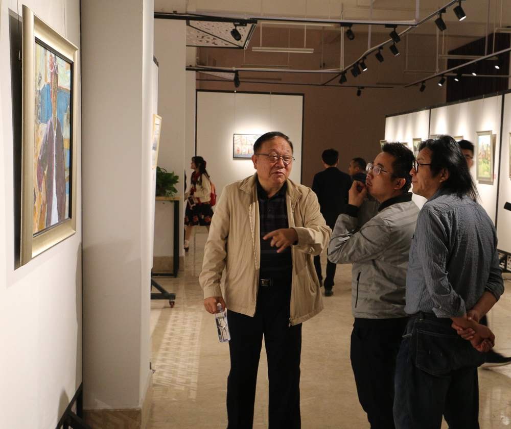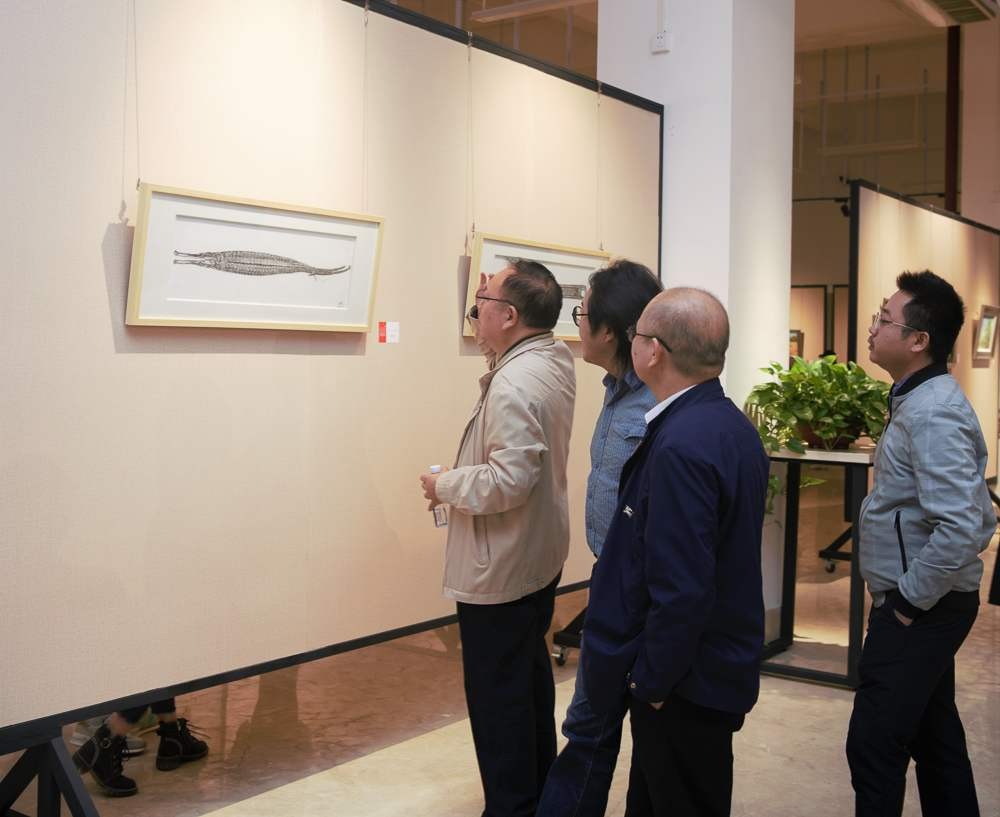 开幕仪式后,大家进入展厅观展,对作品进行现场交流指导。