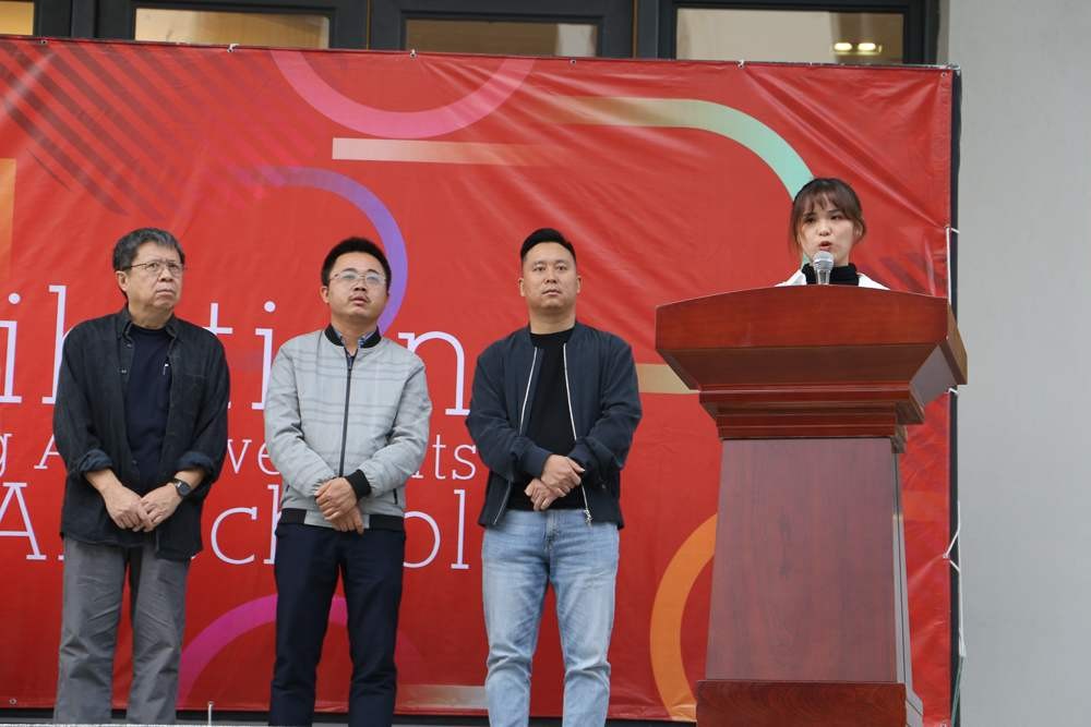 随后,绘画1701班辛文韬同学代表学生发言,他表示,通过坚持不懈的专业学习实践,取得了一些成绩;希望同学们珍惜当下,明确目标,奋勇前行。绘画1803班杨慧同学上台发言,校园写生活动令她收获颇丰,老师每晚组织的习作讲评会,让每位同学都能在学习中不断进步。
