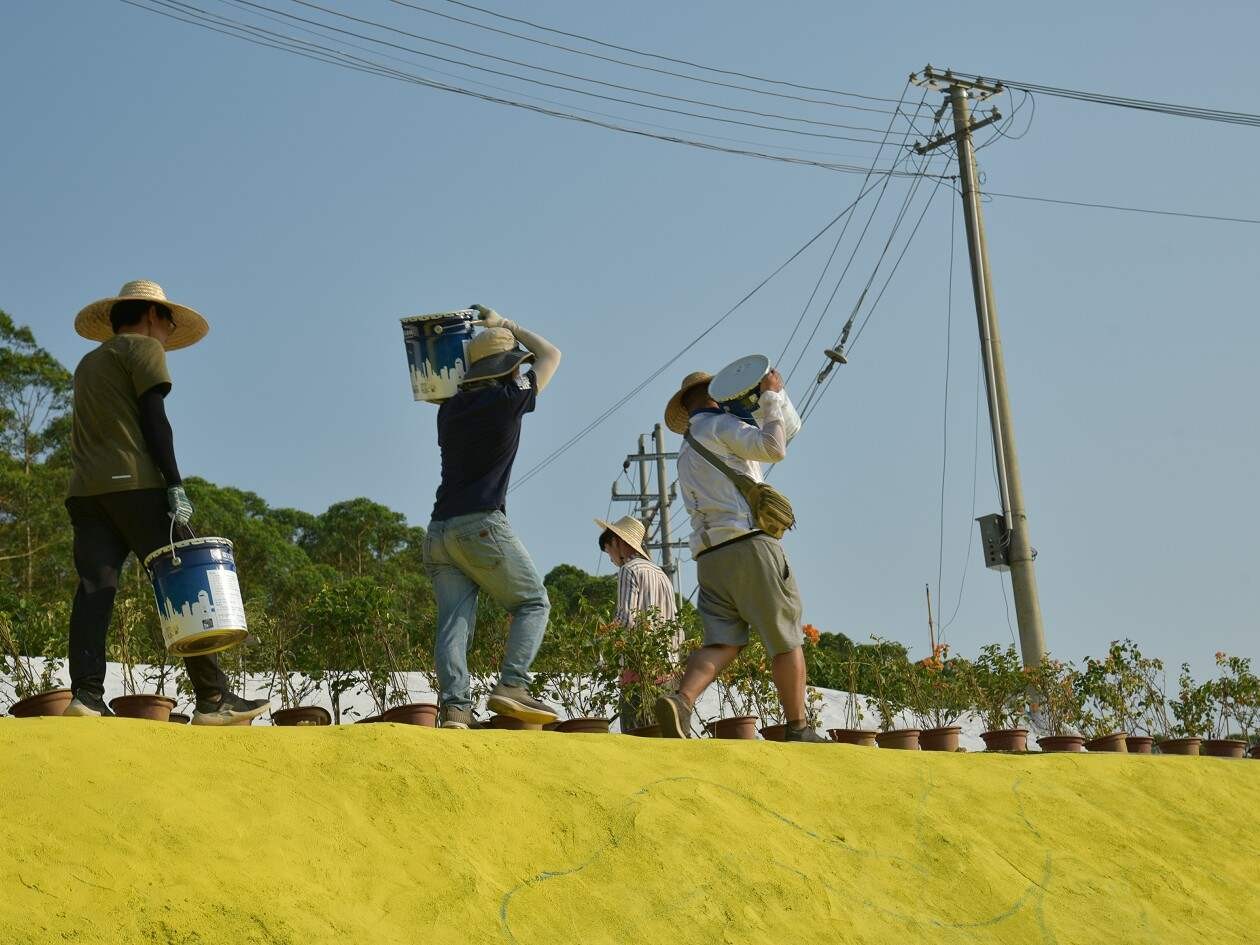 雕塑专业师生前往现场安装DLY手工成品。