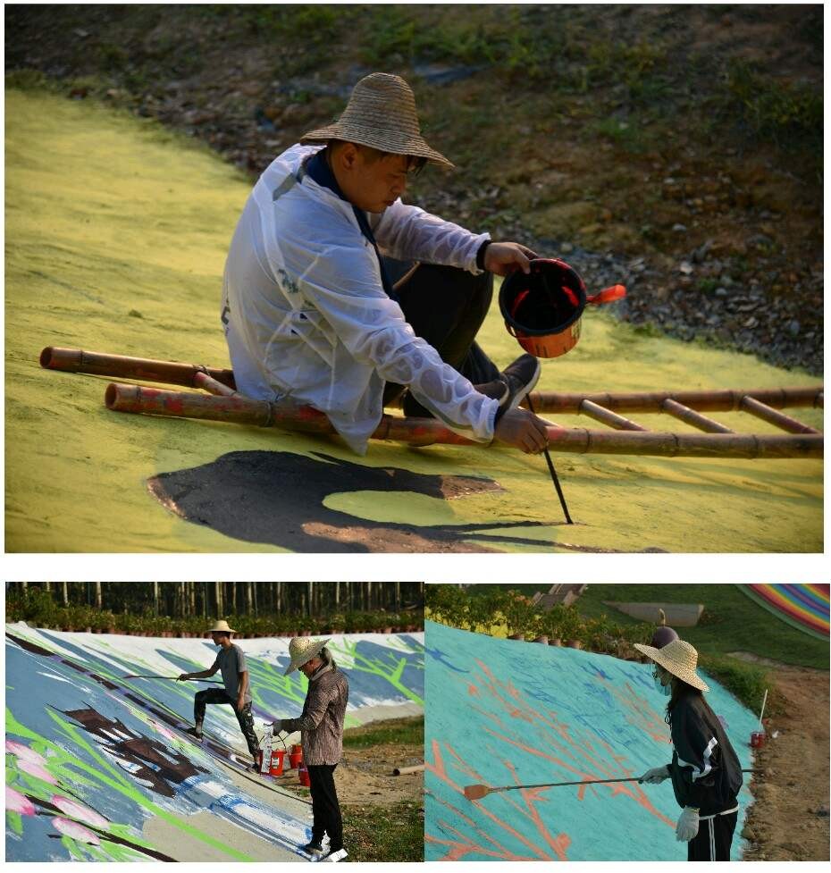 此次墙绘面积达3000多平米,手工制作达100多件,各位老师同学们热情高涨,不顾酷暑,不畏辛劳,不计报酬,全身心投入创作当中。