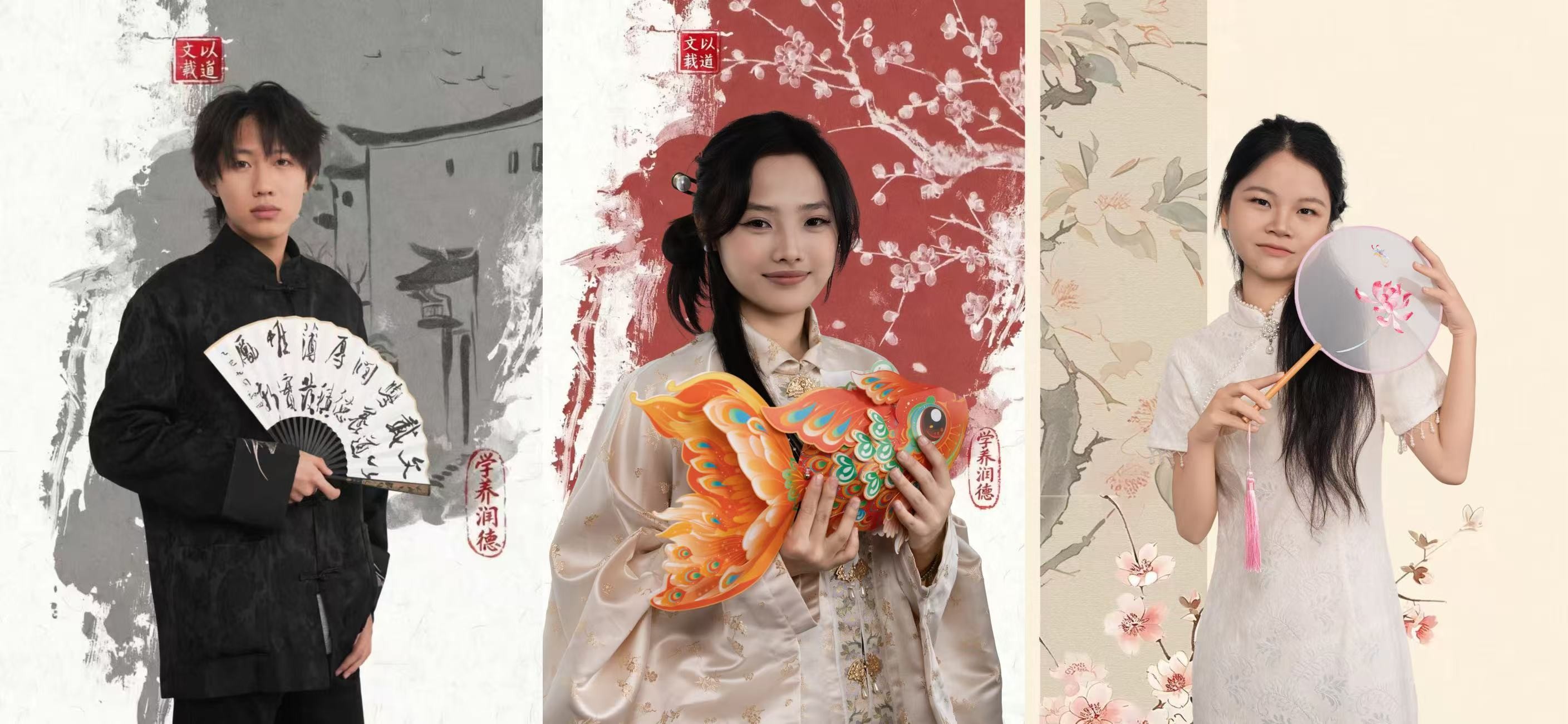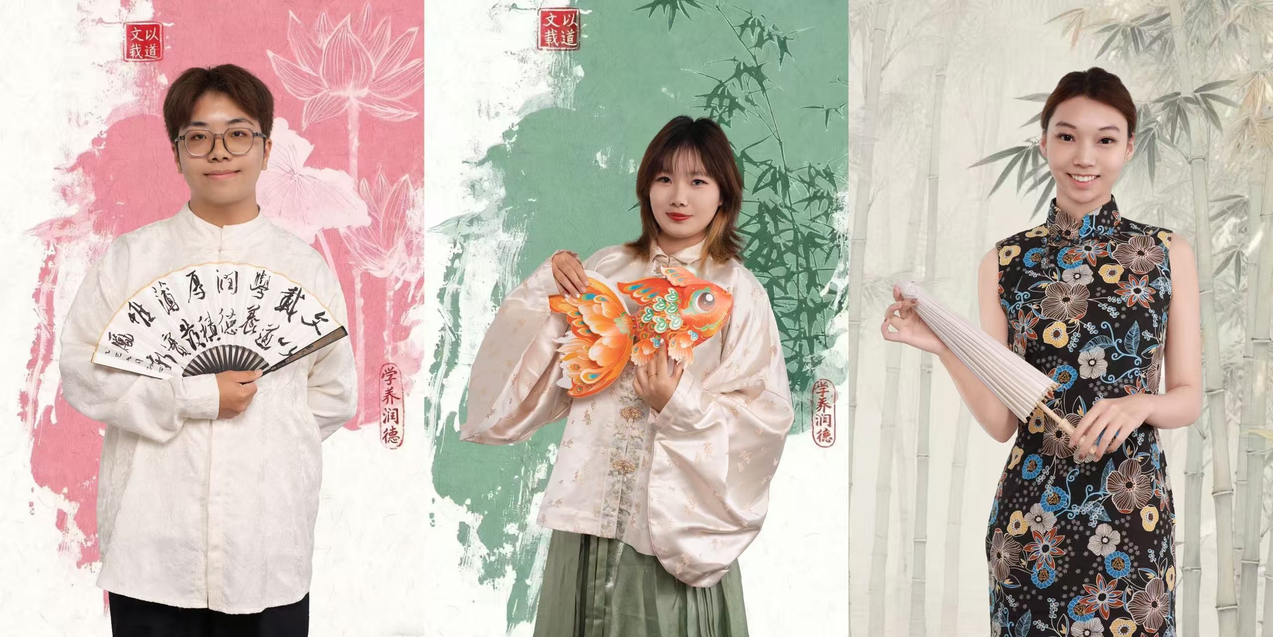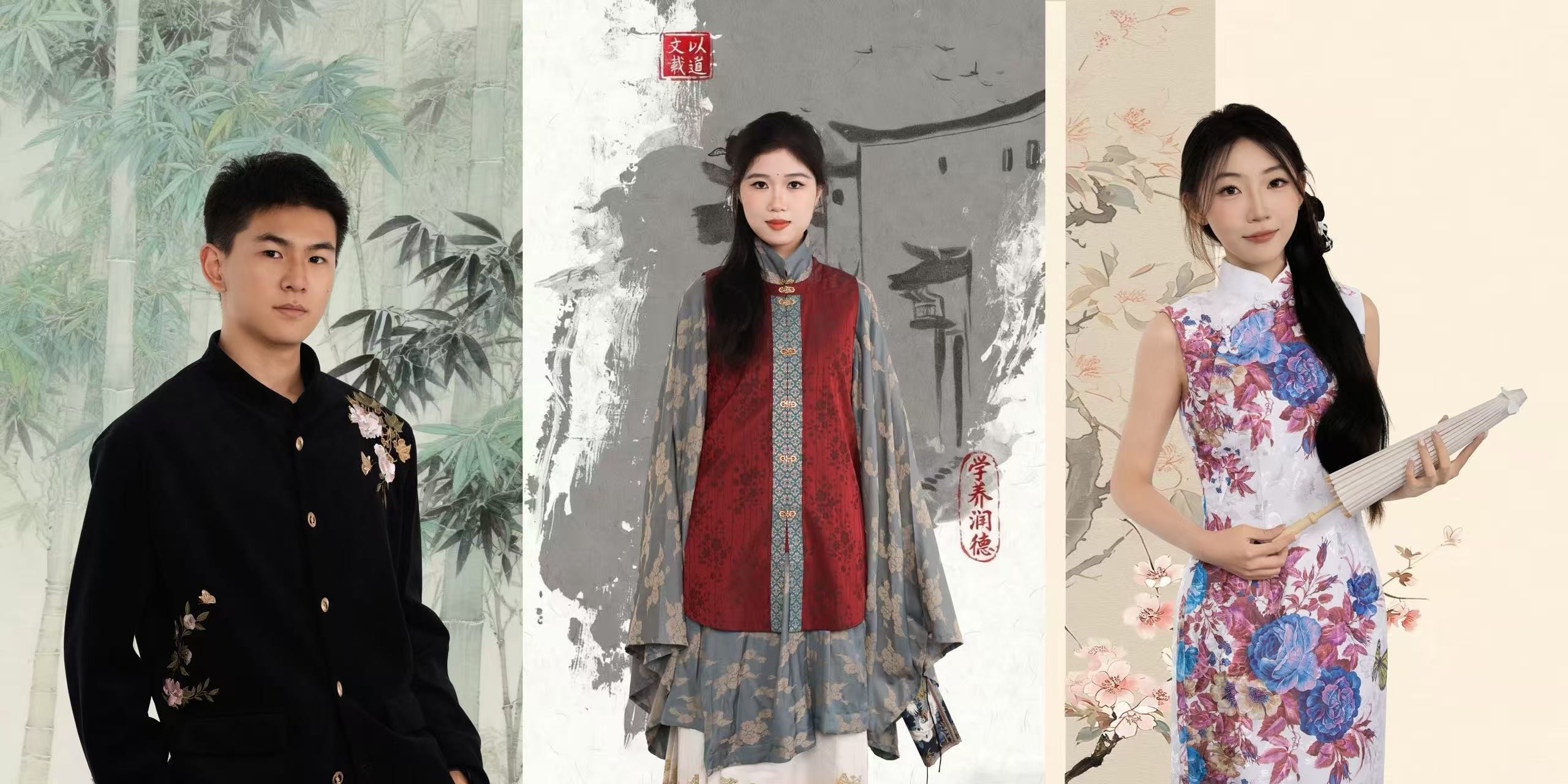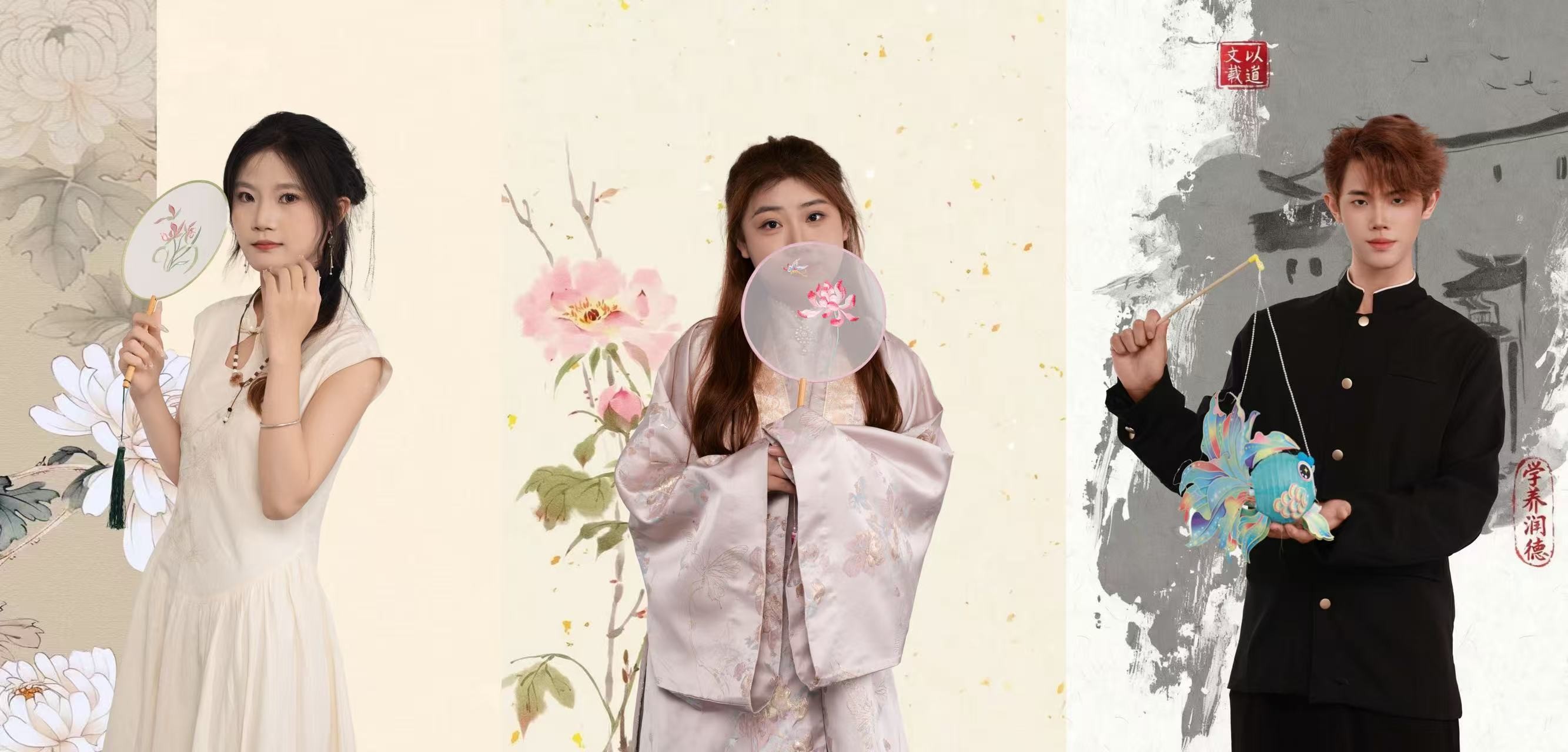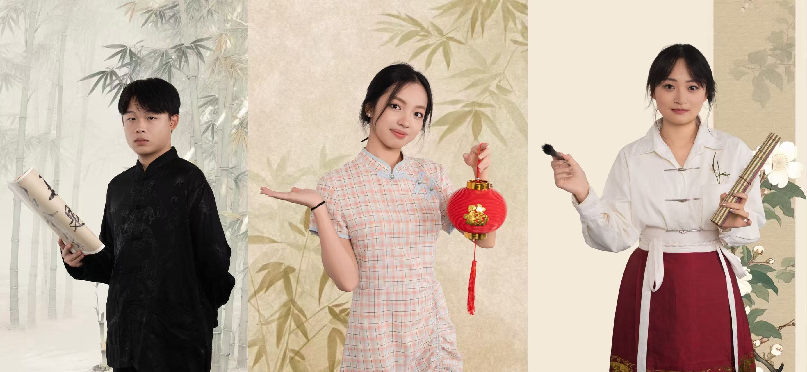 本次宣传照拍摄以中式美学为核心视觉导向,现场布置与服饰搭配深度融入传统元素。镜头前,学生干部们身着整洁古典服饰,或手持毛笔、典籍展现文院学子的书卷气,或并肩而立传递团队协作的凝聚力,或面带微笑彰显青年学子的朝气,每一个姿态都精心打磨,每一张面孔都洋溢着对学生工作的热忱精准营造出“书卷气”与“古典韵”交融的文化氛围。