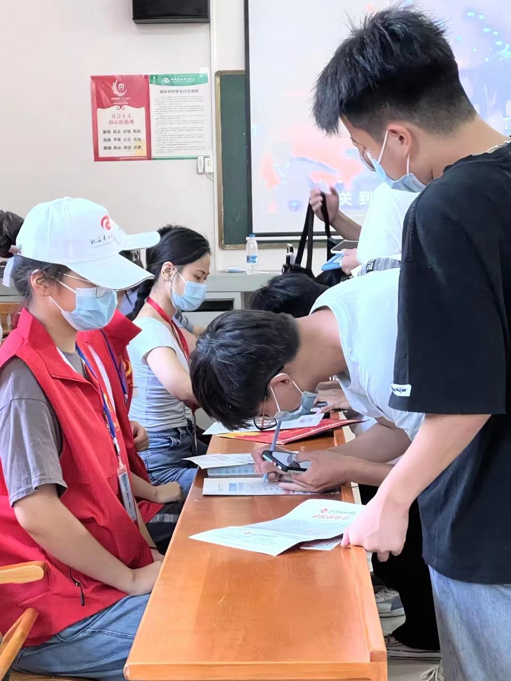 志愿者们在各组长的带领下积极配合,认真参与,他们用热情的笑脸、亲切的问候、贴心的服务,展示着自己对来自全国各地莘莘学子的热情。