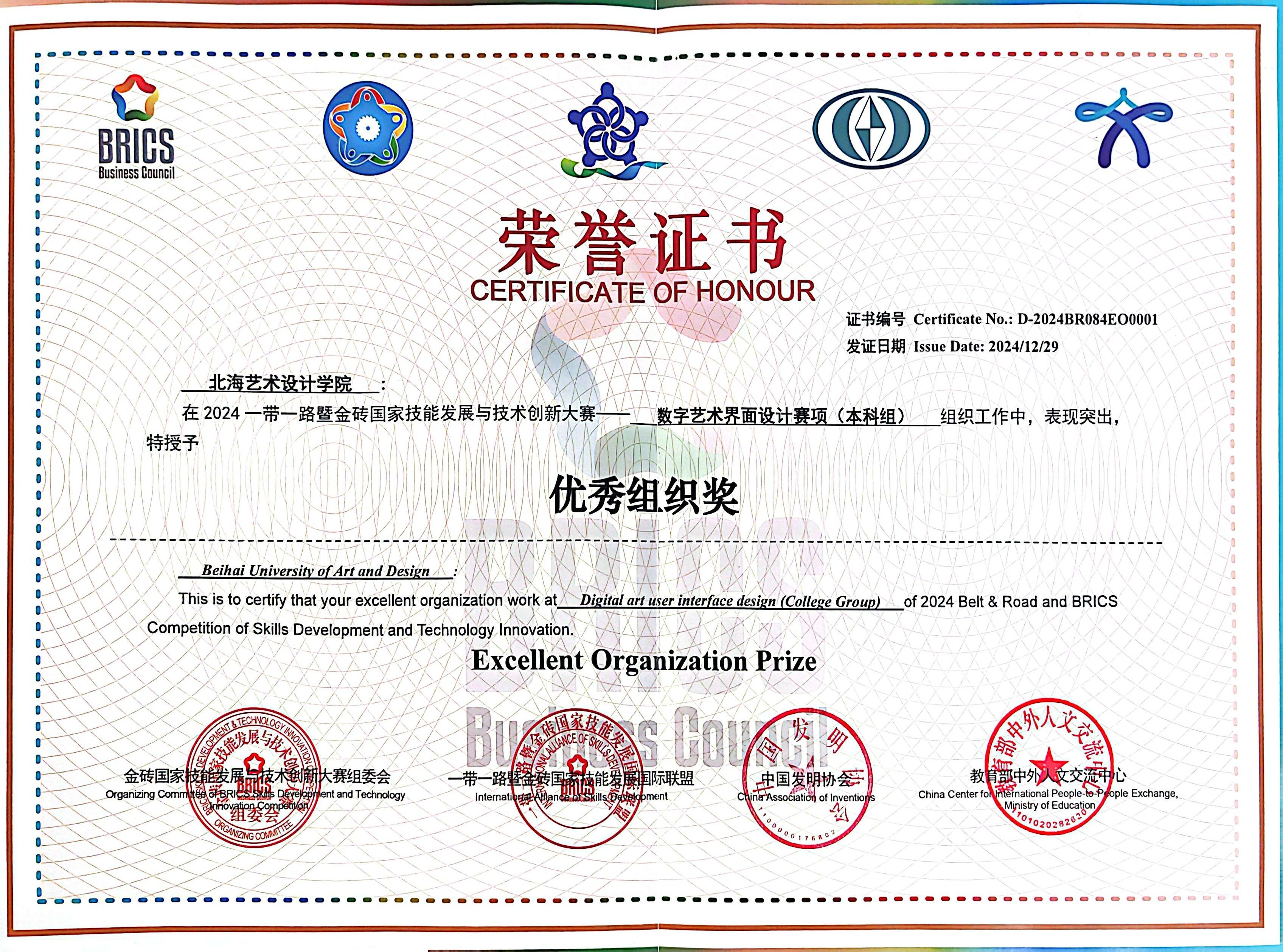 北海艺术设计学院获大赛“优秀组织奖”