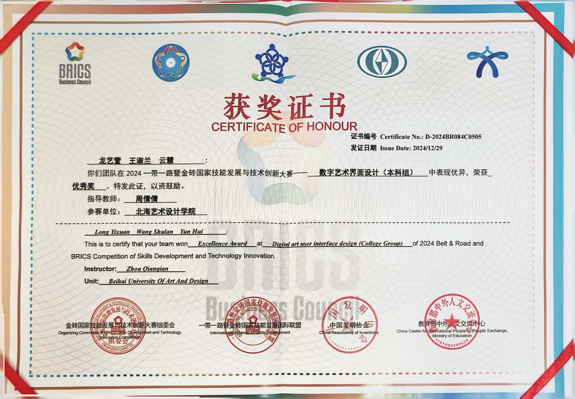 设计艺术学院师生在2024一带一路暨金砖国家技能发展与技术创新大赛——数字艺术界面设计(本科组)中斩获多项荣誉