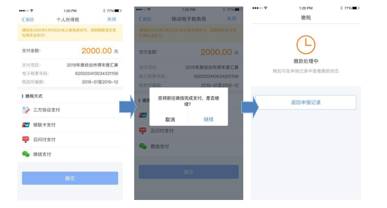选择相应的缴税方式,完成支付。