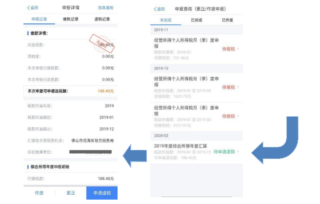 二、缴纳税款或申请退税