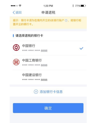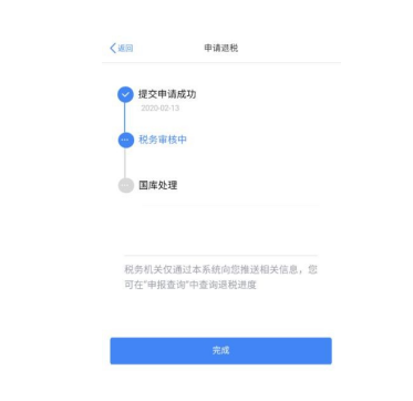 选择银行卡后提交退税申请,可以看到退税申请进度。