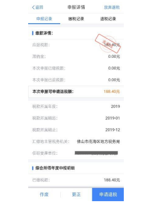 若您存在多缴税款,可点击【申请退税】。