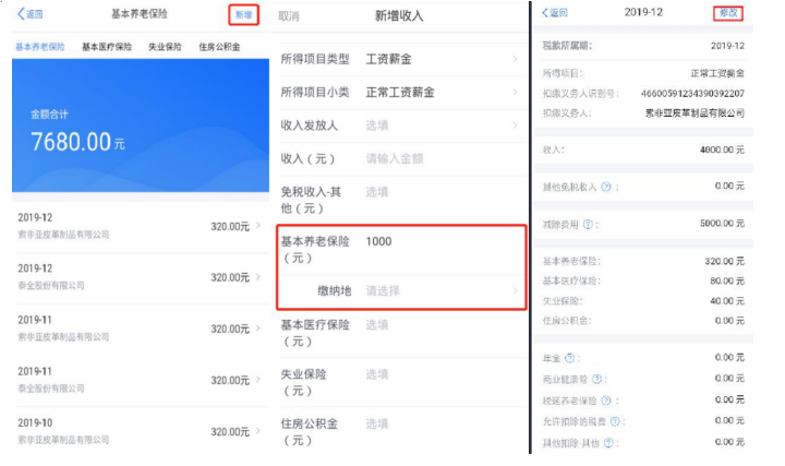 在专项扣除列表界面,您可分项目进行新增和修改。