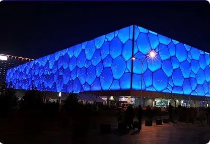 国家游泳中心又被称为"水立方"(Water Cube),位于北京奥林匹克公园内,是北京为2008年夏季奥运会修建的主游泳馆,也是2008年北京奥运会标志性建筑物之一。它的设计方案,是经全球设计竞赛产生的"水的立方"([H2O]3)方案。2003年12月24开工,在2008年1月28日竣工。其与国家体育场(俗称鸟巢)分列于北京城市中轴线北端的两侧,共同形成相对完整的北京历史文化名城形象。